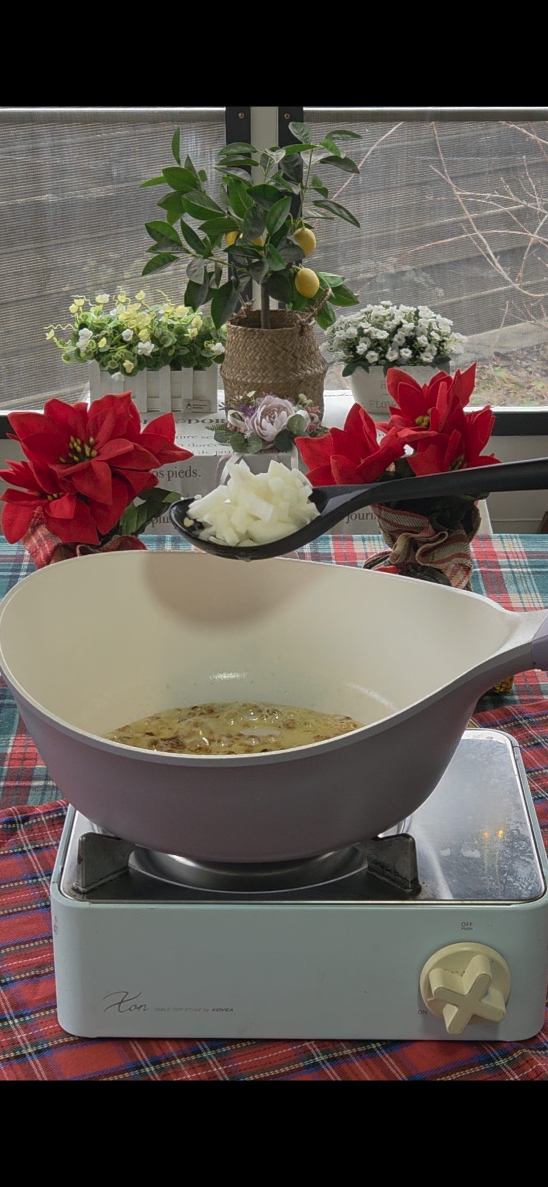 • 다진양파를 넣어 노릇하게 같이 볶아주세요.