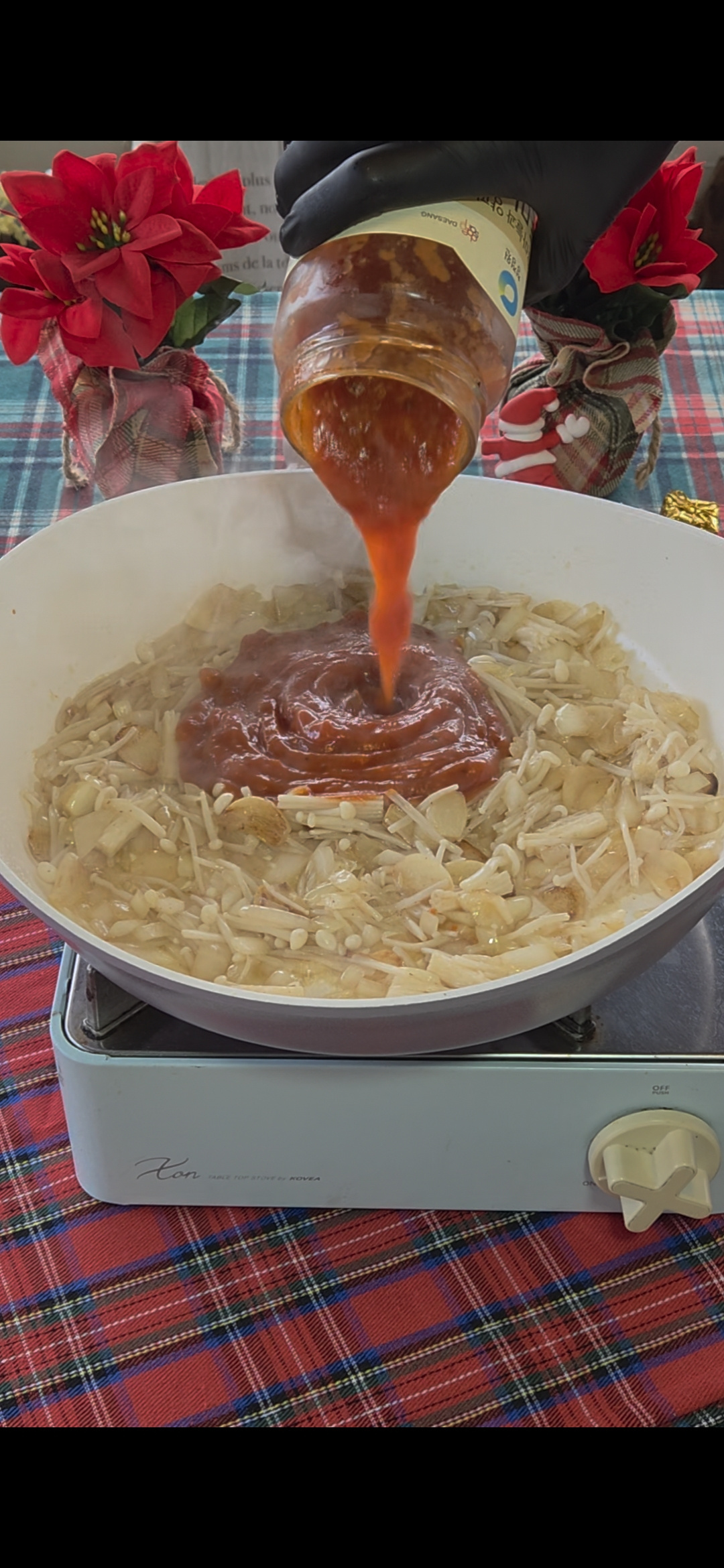 • 오븐 용기에 토마토소스를 넣어주세요.