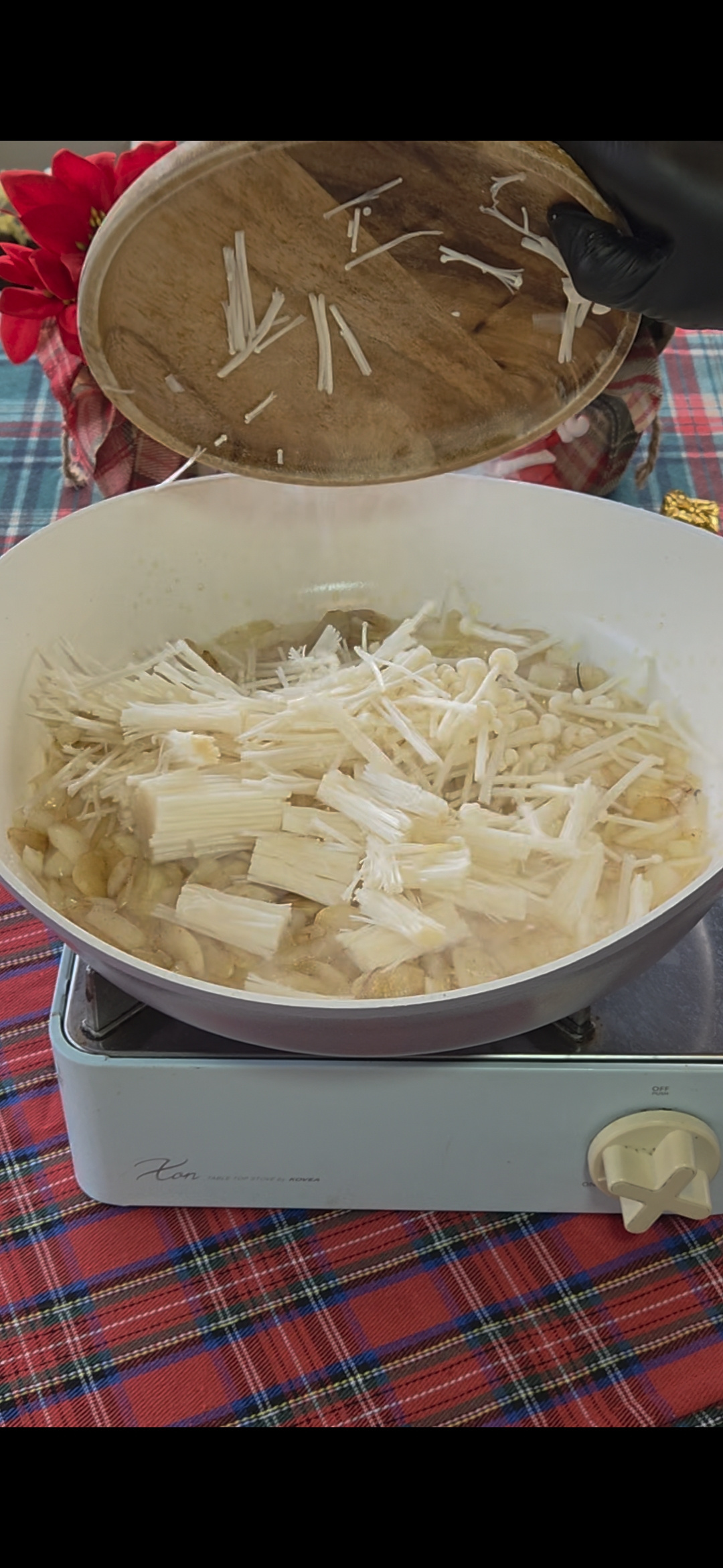 • 팽이버섯을 넣어 한두번 같이 볶아주세요.