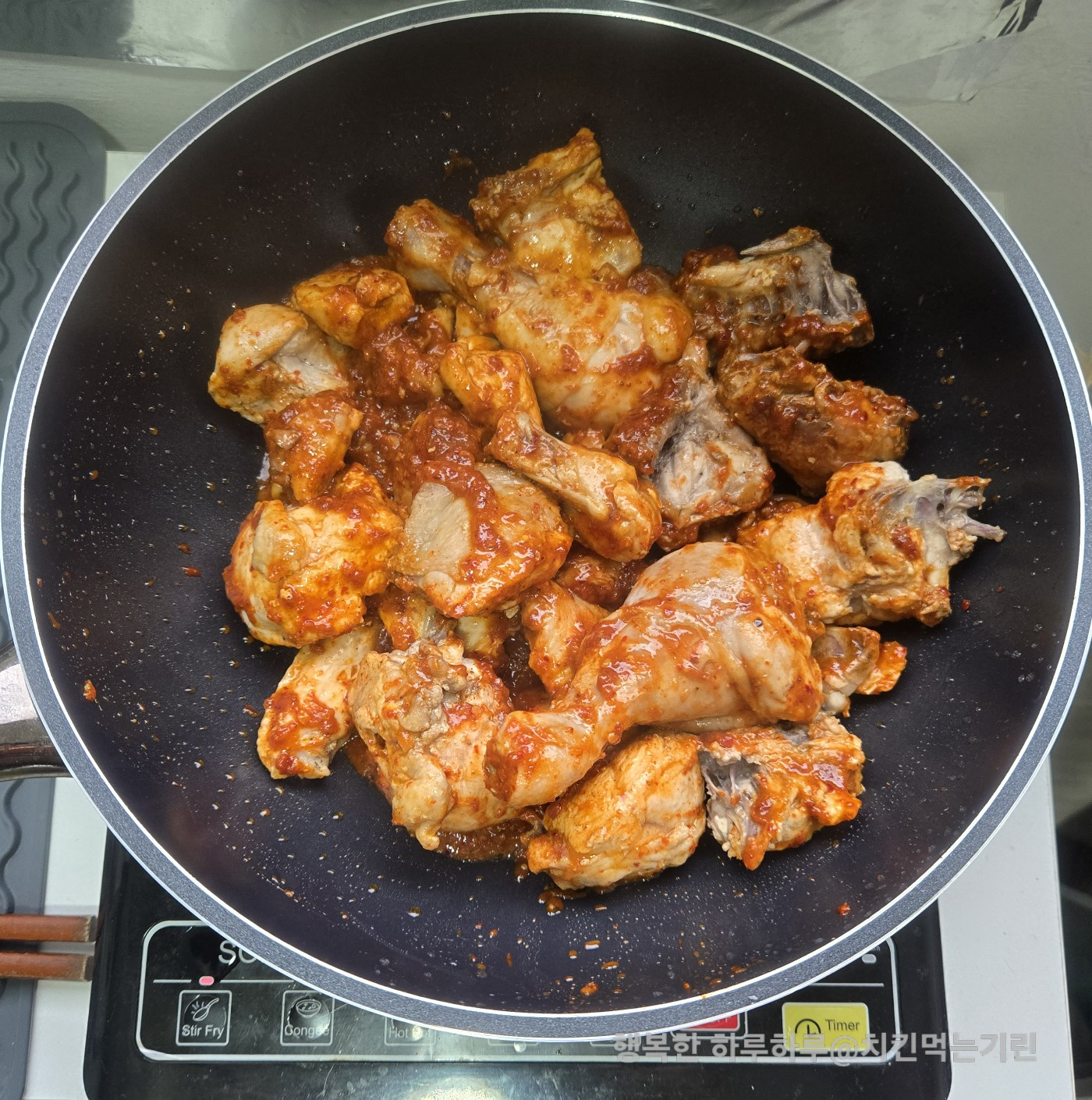 닭을 초벌할때는 중강불 바짝 볶아줍니다