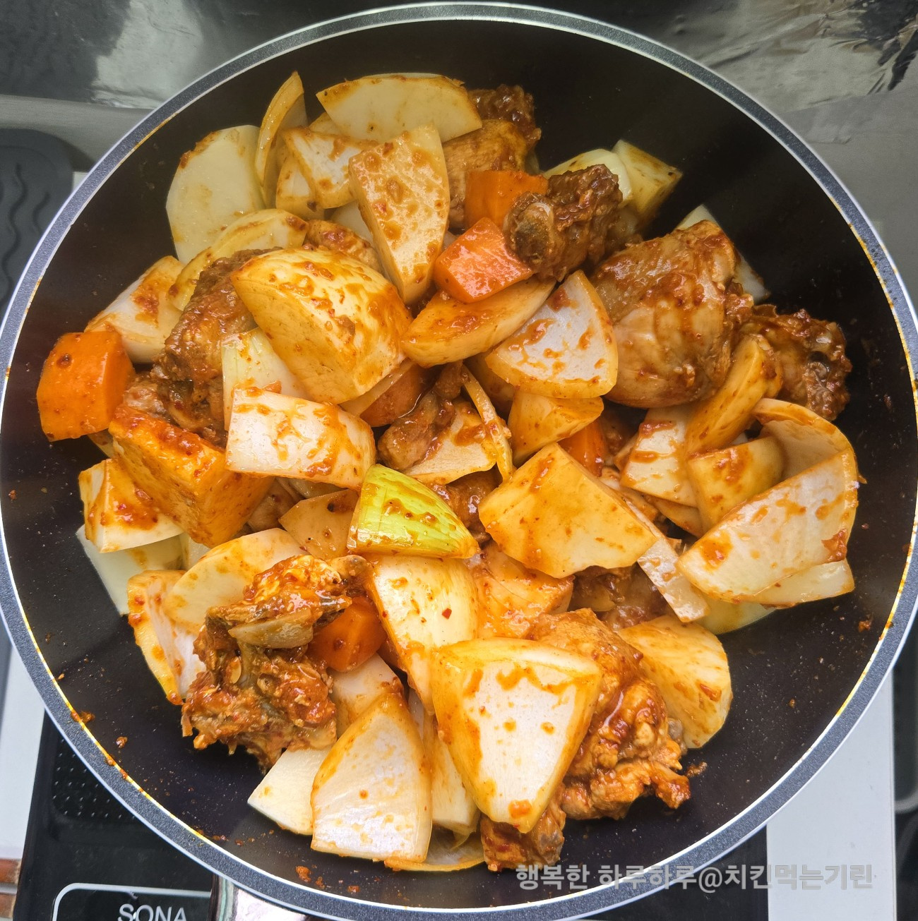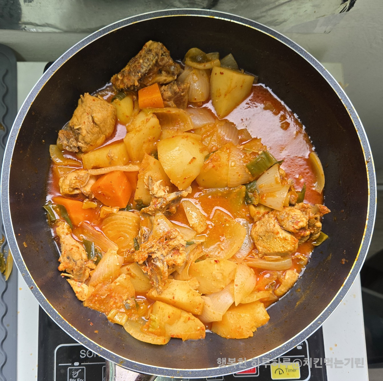 양념을 넣은 후에는 중약불로 끓여줍니다.