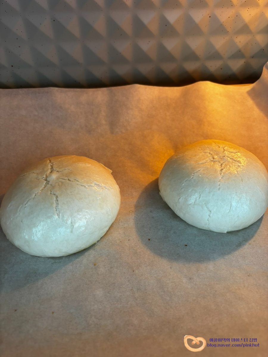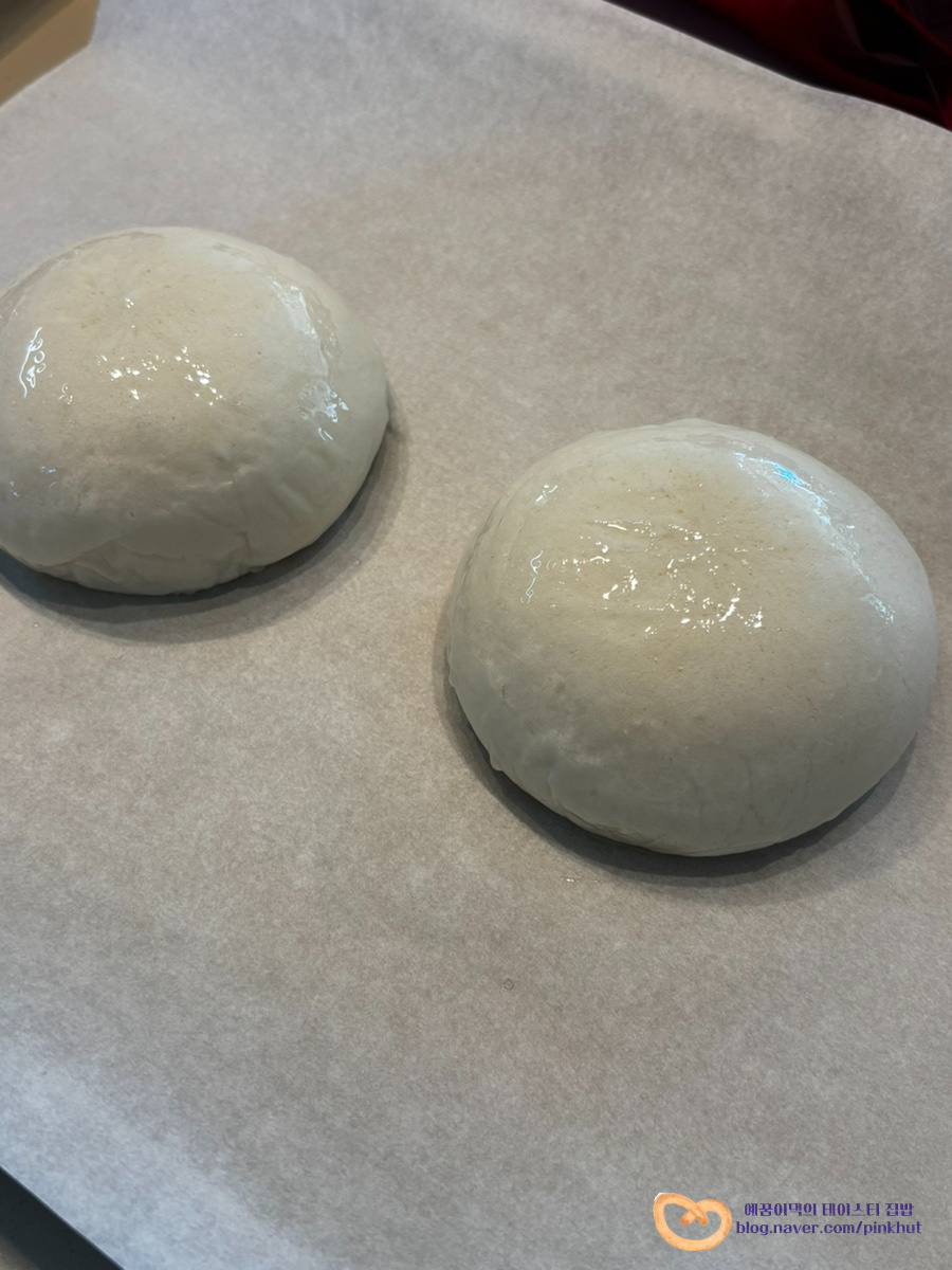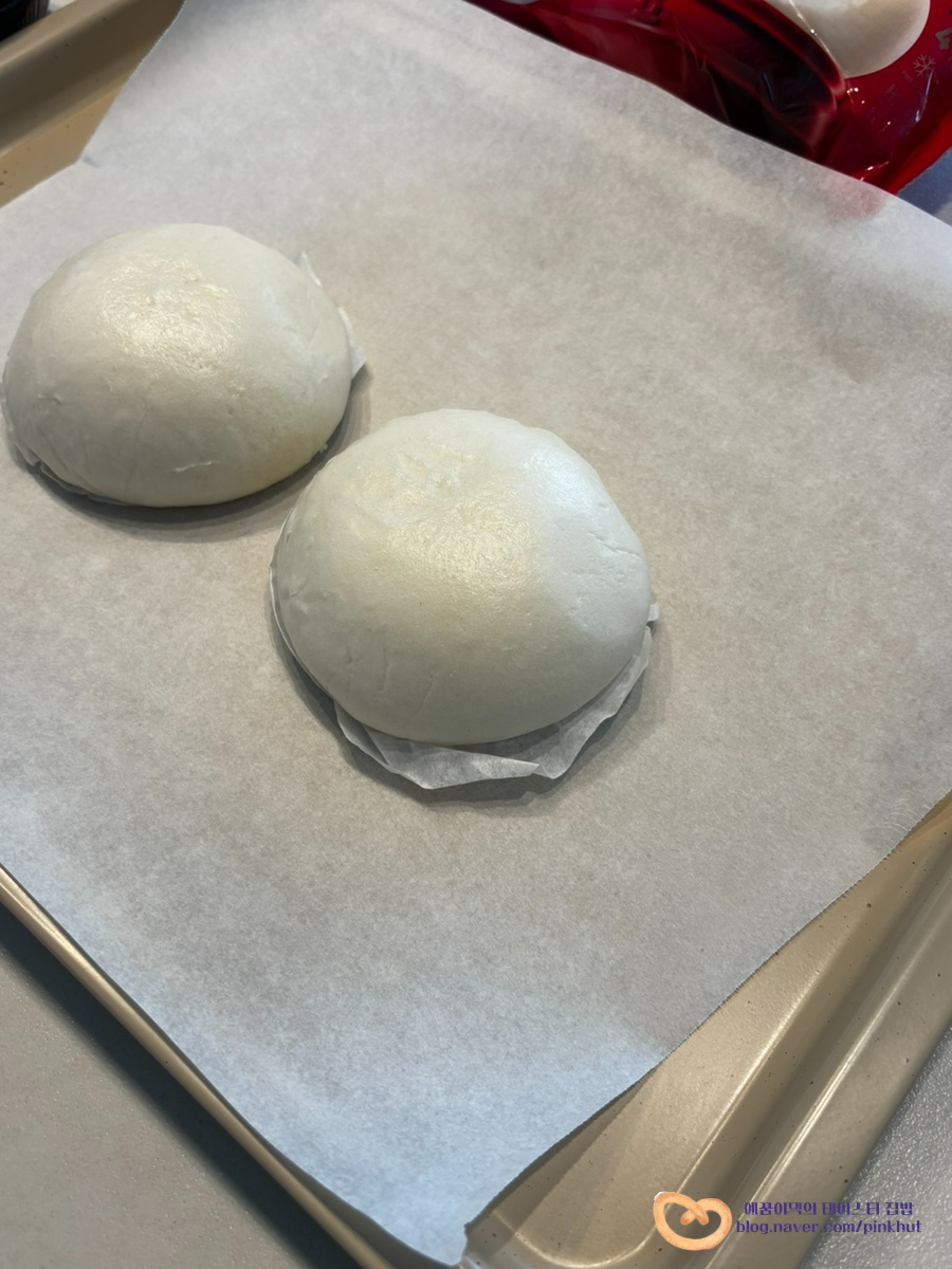 통단팥 앙금이 들어간 팥호빵이에요. 에어프라이어나 오븐 트레이에 호빵 2개 올려줍니다