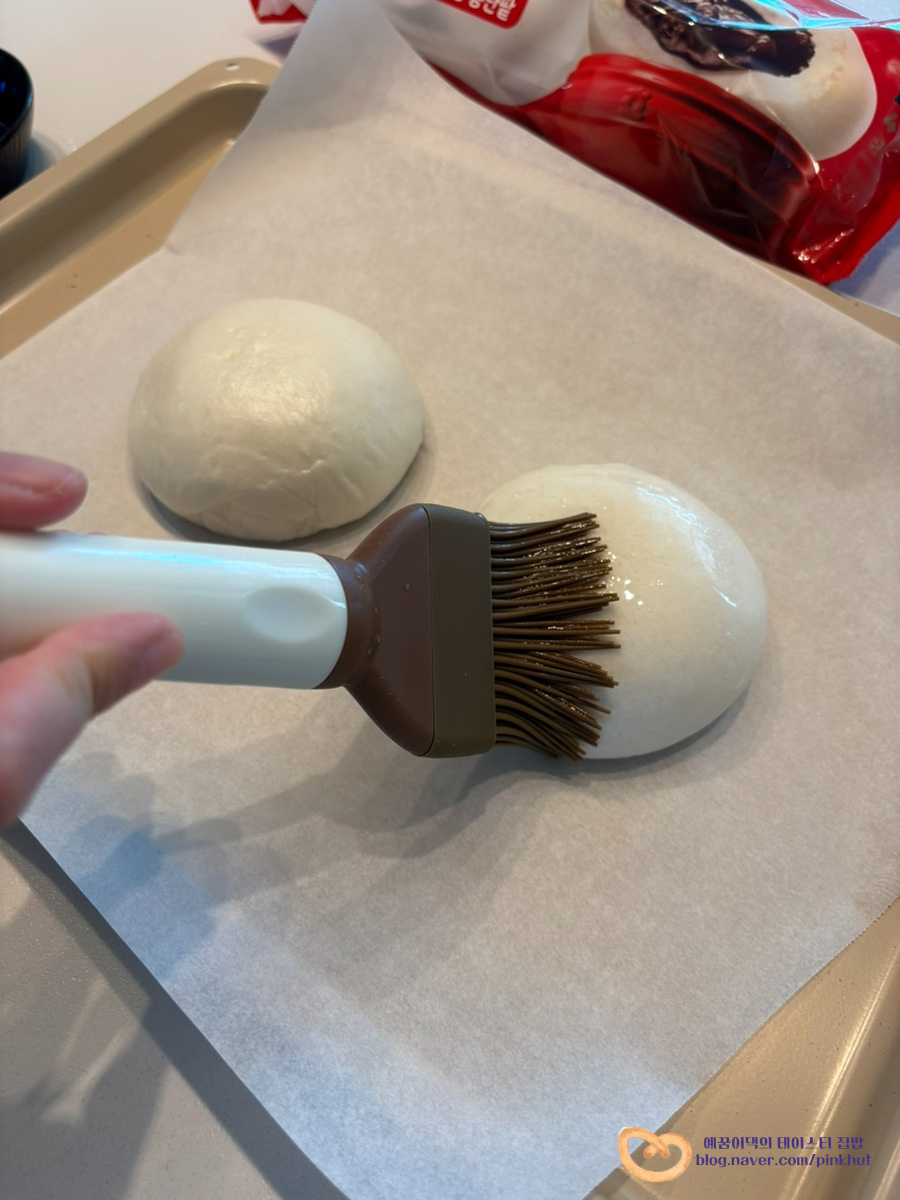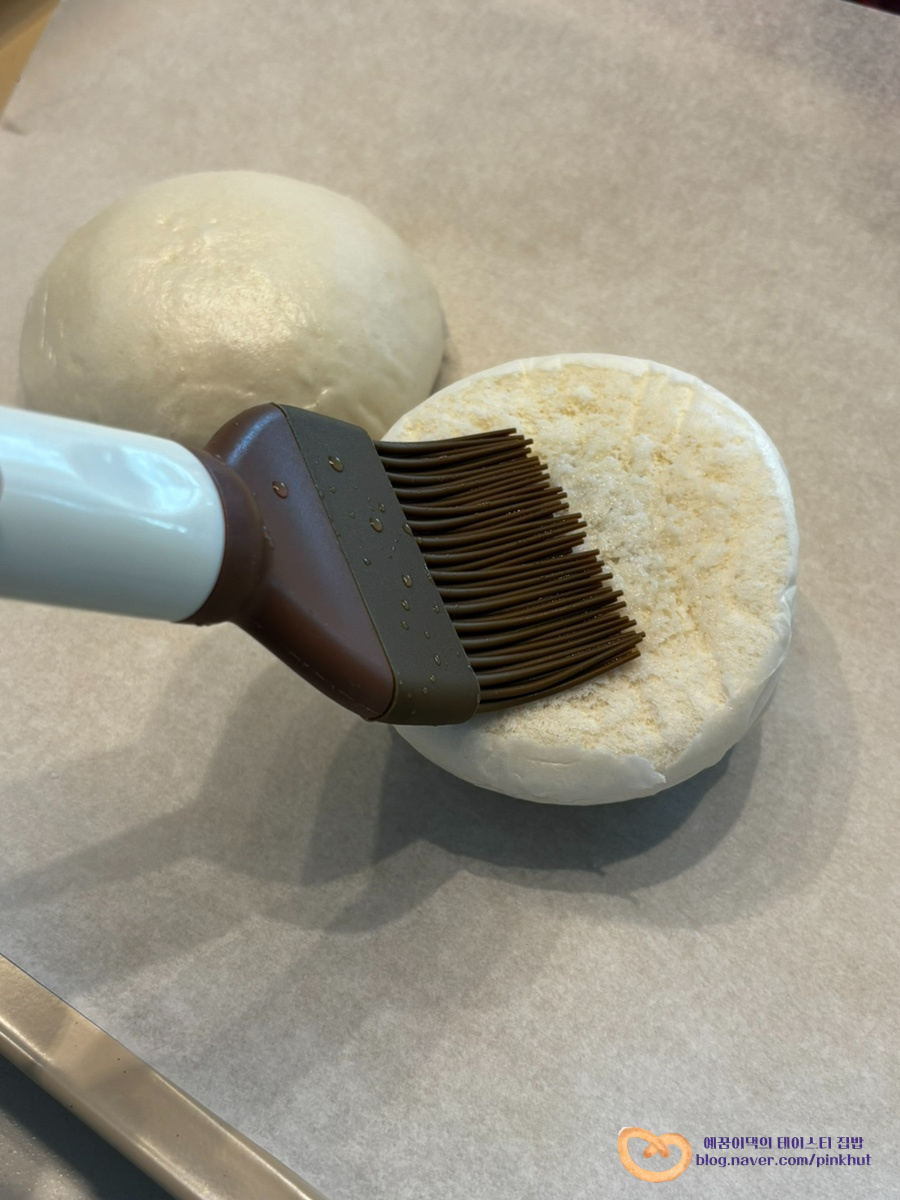 윗부분에는 식용유를 골고루 발라주면 준비 끝이에요.