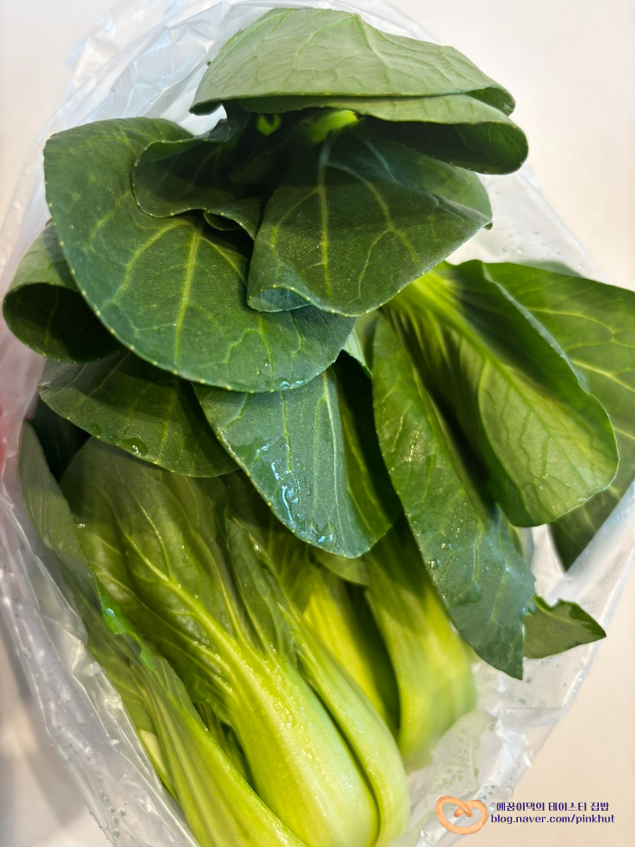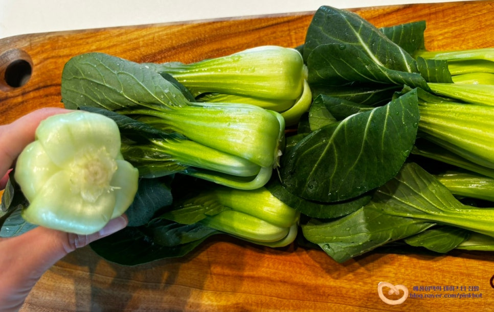 청경채는 300g을 준비했어요. 이파리를 하나씩 다 떼어내지 않고 통으로 사용할 거예요