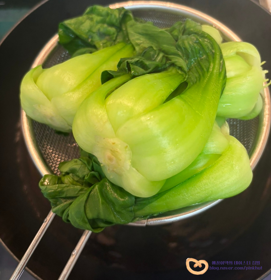 청경채 데치는 시간은 30초~1분 사이로 잡아주면 적당해요.