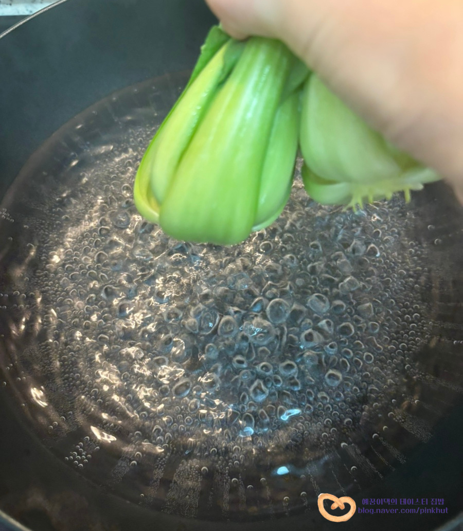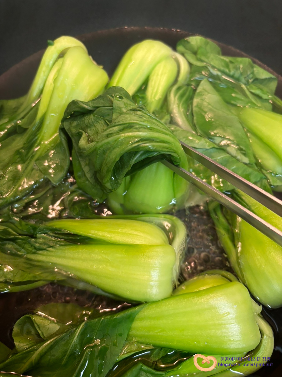 웍이나 냄비에 청경채가 잠길 정도의 물을 담고 보글보글 끓여주세요.