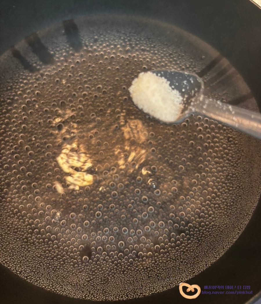 설탕이 녹도록 잘 저어주고 가볍게 끓여주세요.