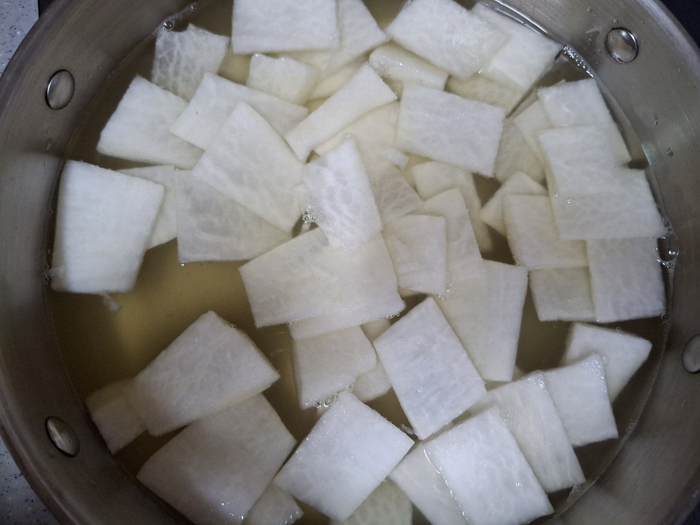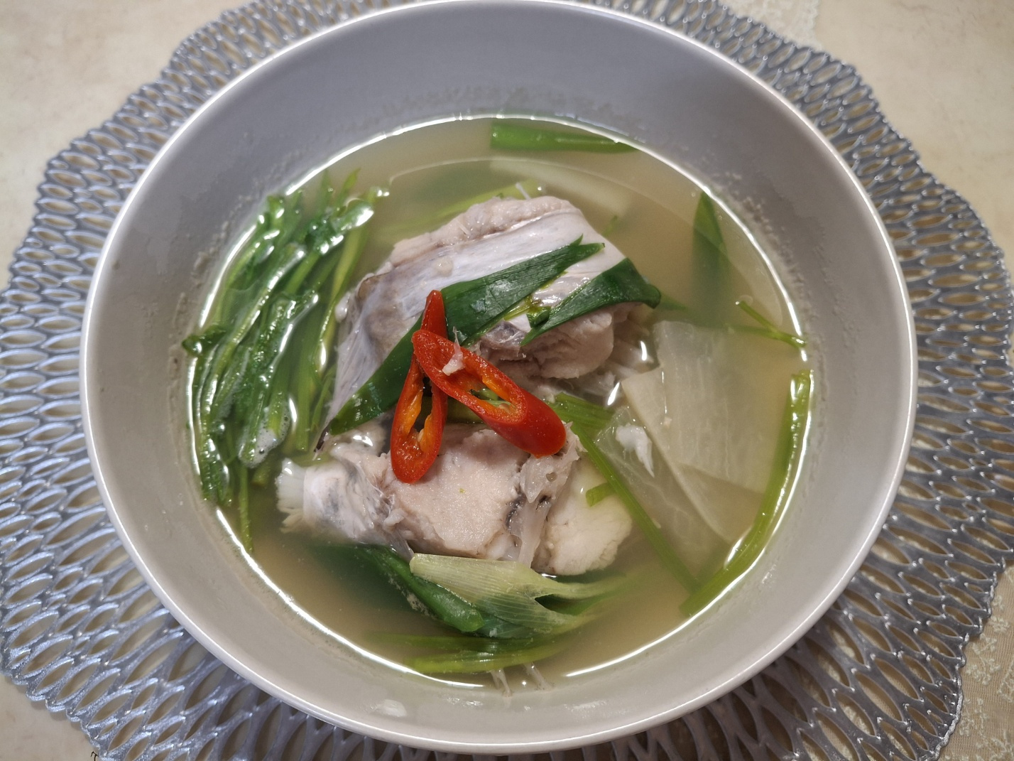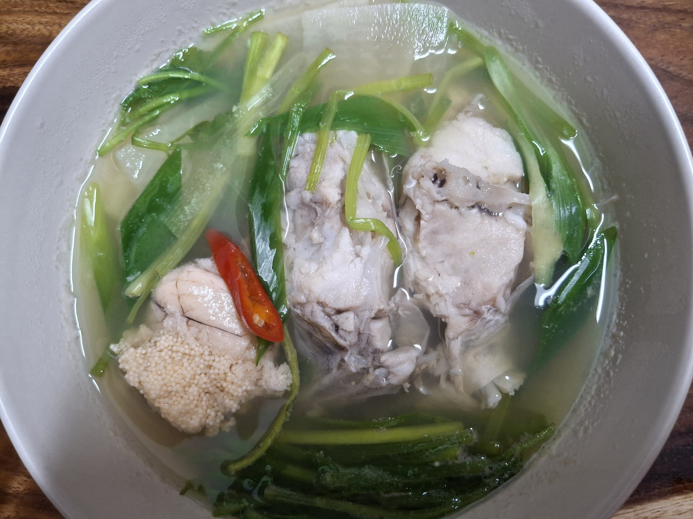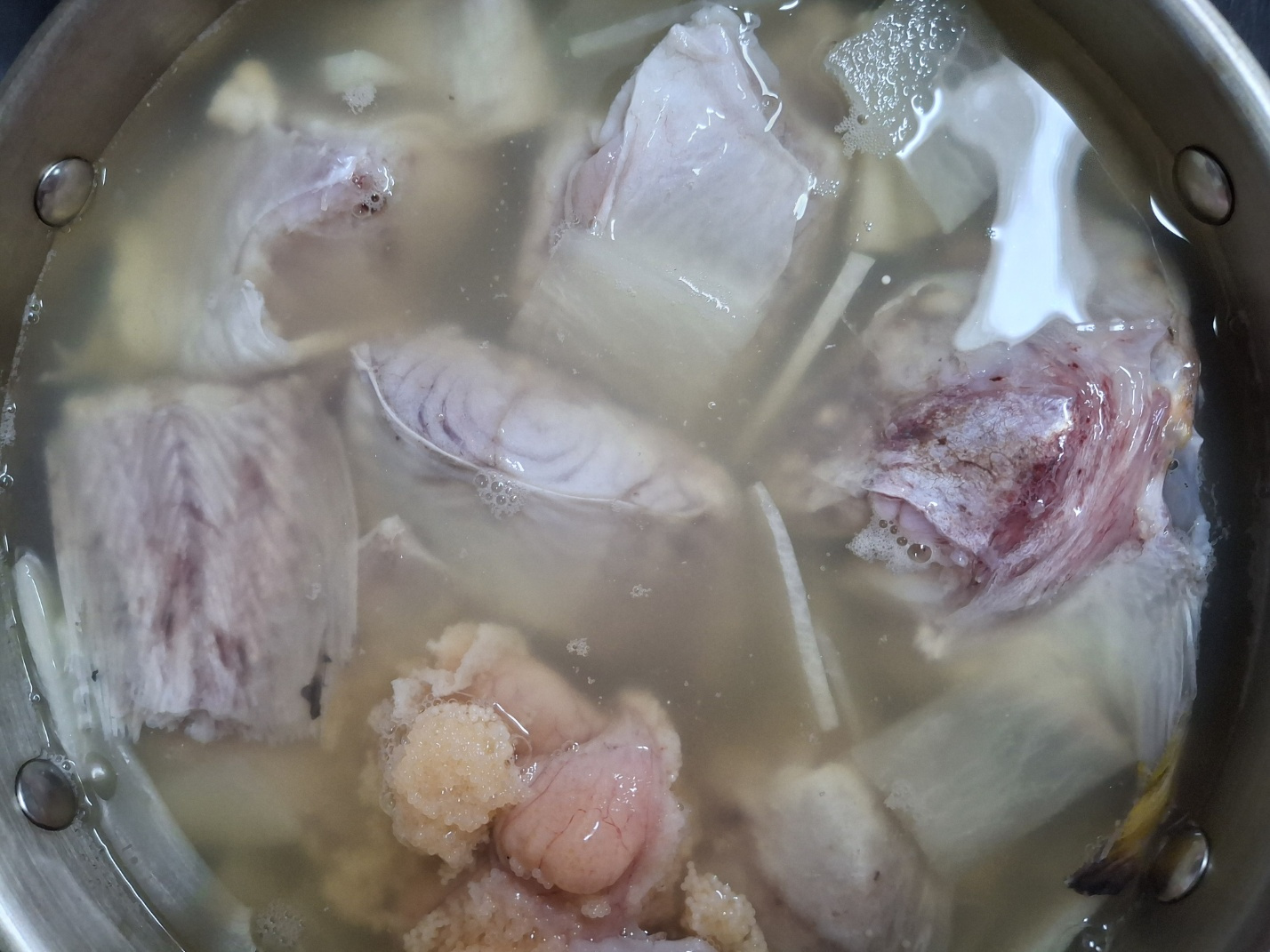 무 300g, 대파 1대, 미나리 100g, 청양고추 1개, 홍고추 1/2개