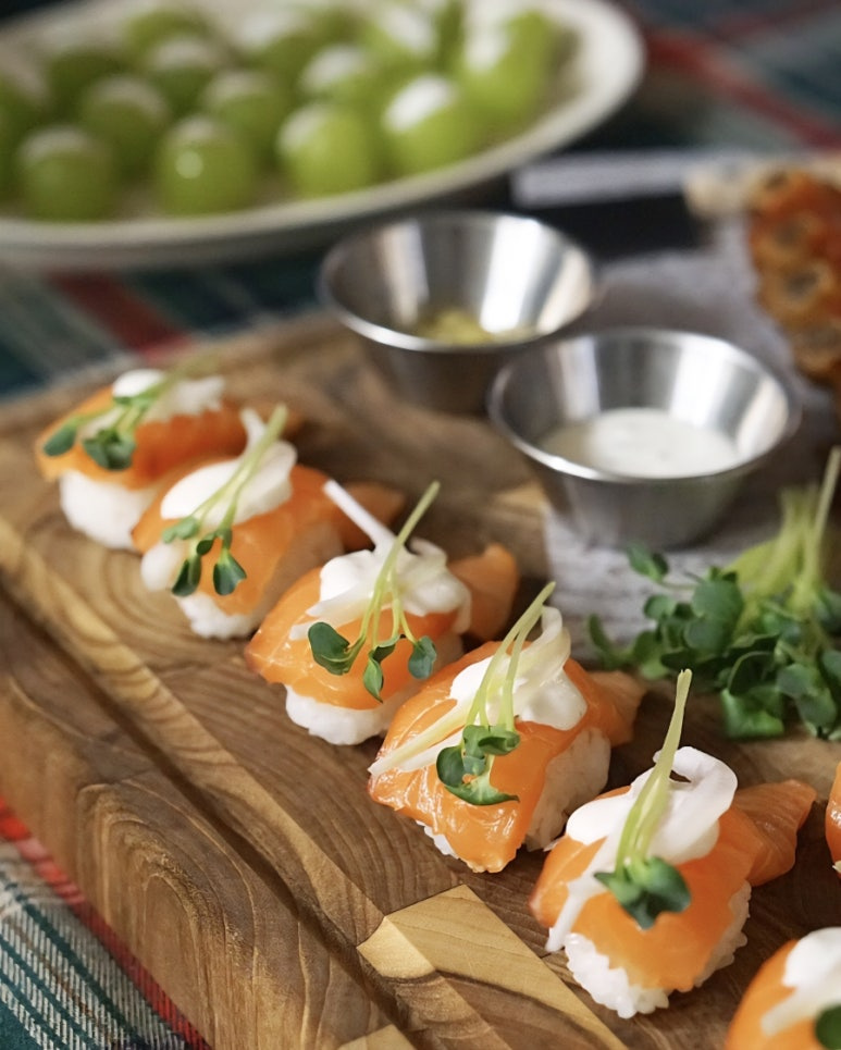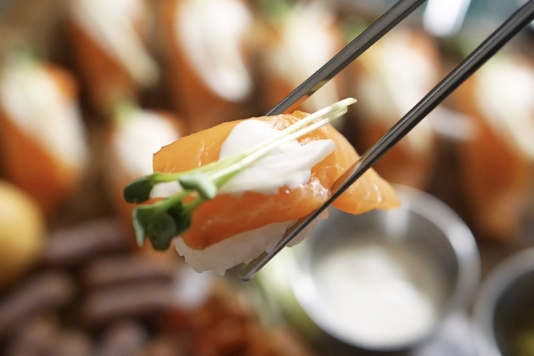 초밥은 보기에도 예쁘고, 식탁 위에 올려두기만 해도 분위기가 한껏 살아나는 메뉴라서 특별한 날이나 손님 초대용으로 정말 좋죠 '◡' 신선한 연어 필렛만 준비되면 단촛물은 쉽게 휘리릭 만들 수 있고, 게다가 연어의 두께도 조절이 가능하니 내 입맛대로 만들어 먹을 수 있어 만족도는 업업! 플레이팅만 조금 신경써도 제법 근사한 비쥬얼을 자랑할 수 있는 연말 홈파티 메뉴 연어초밥 레시피 소개해 드릴게요!