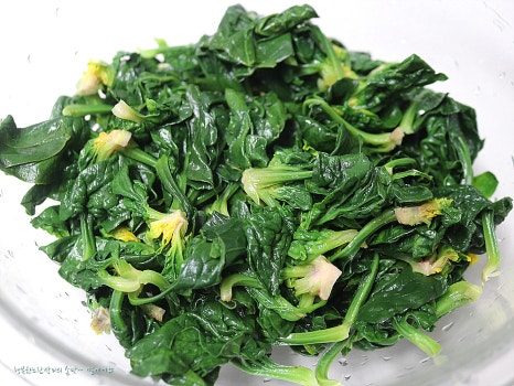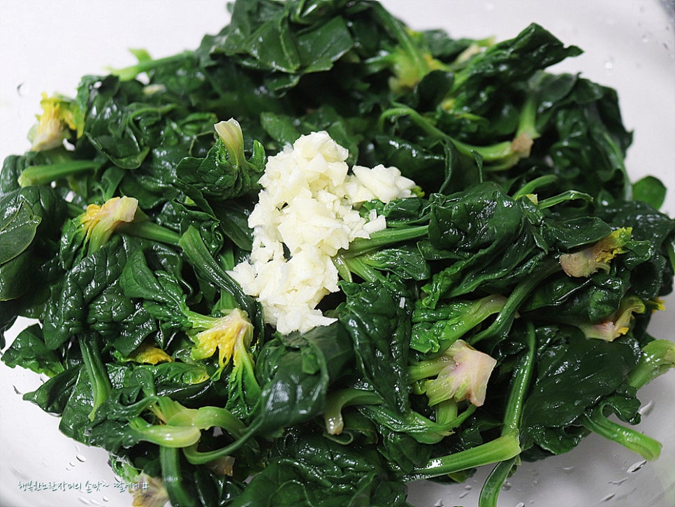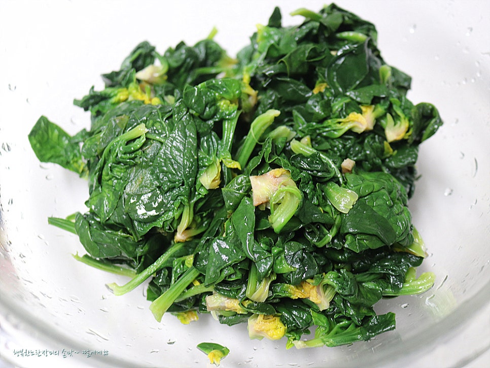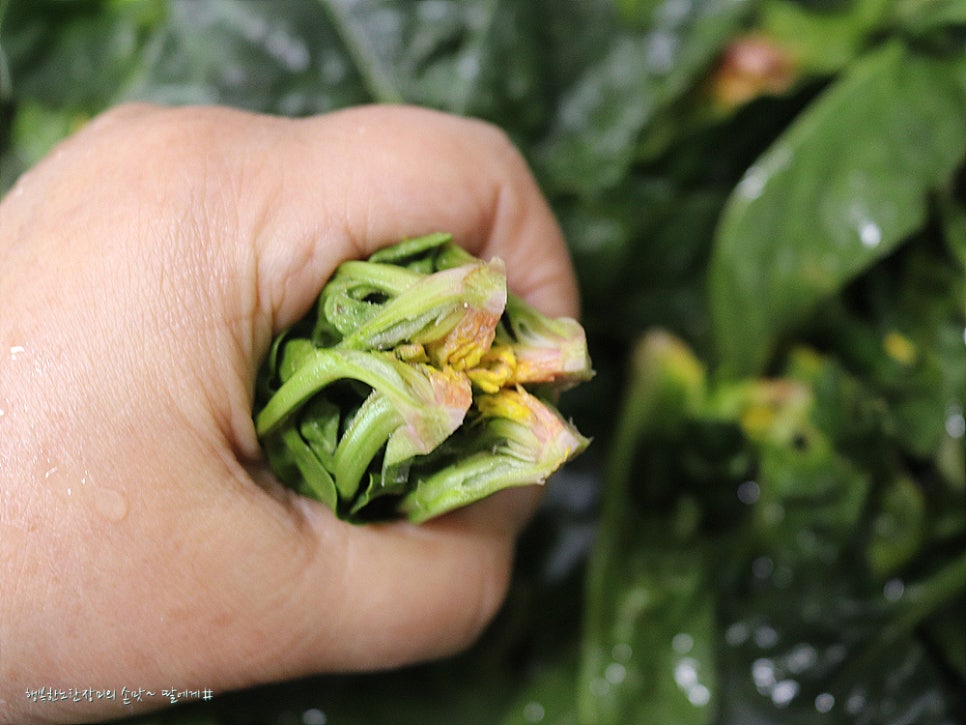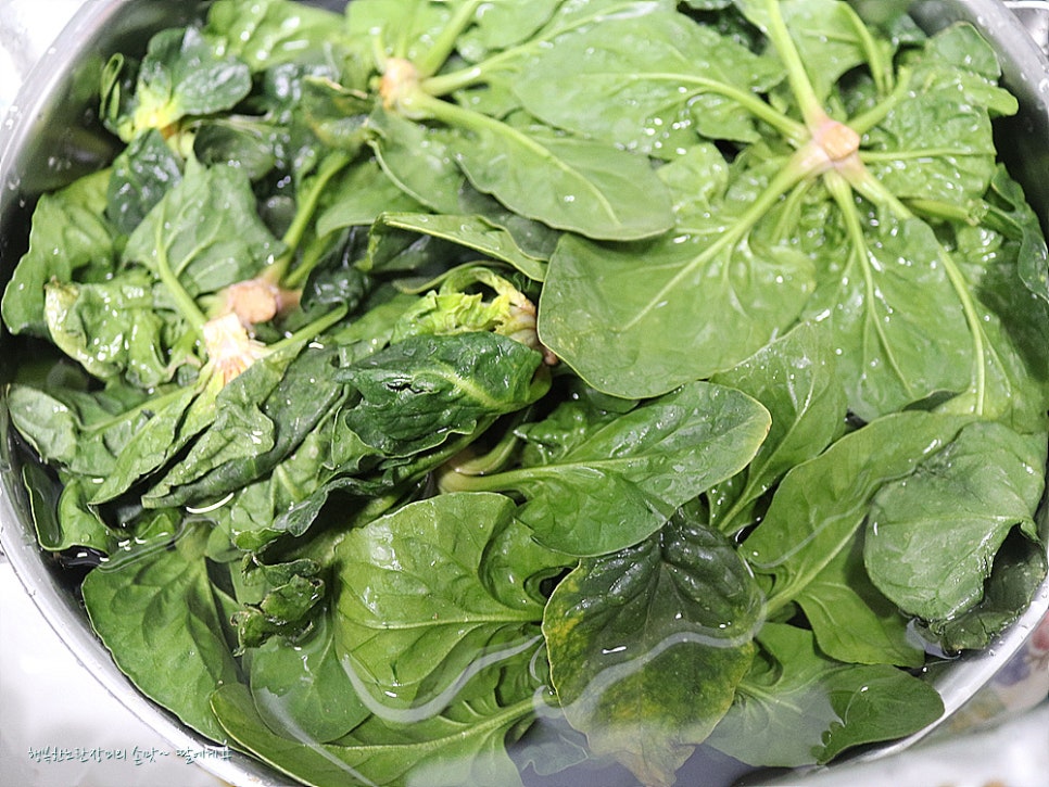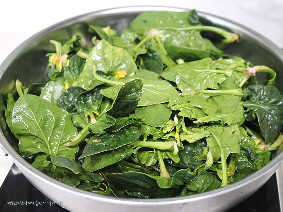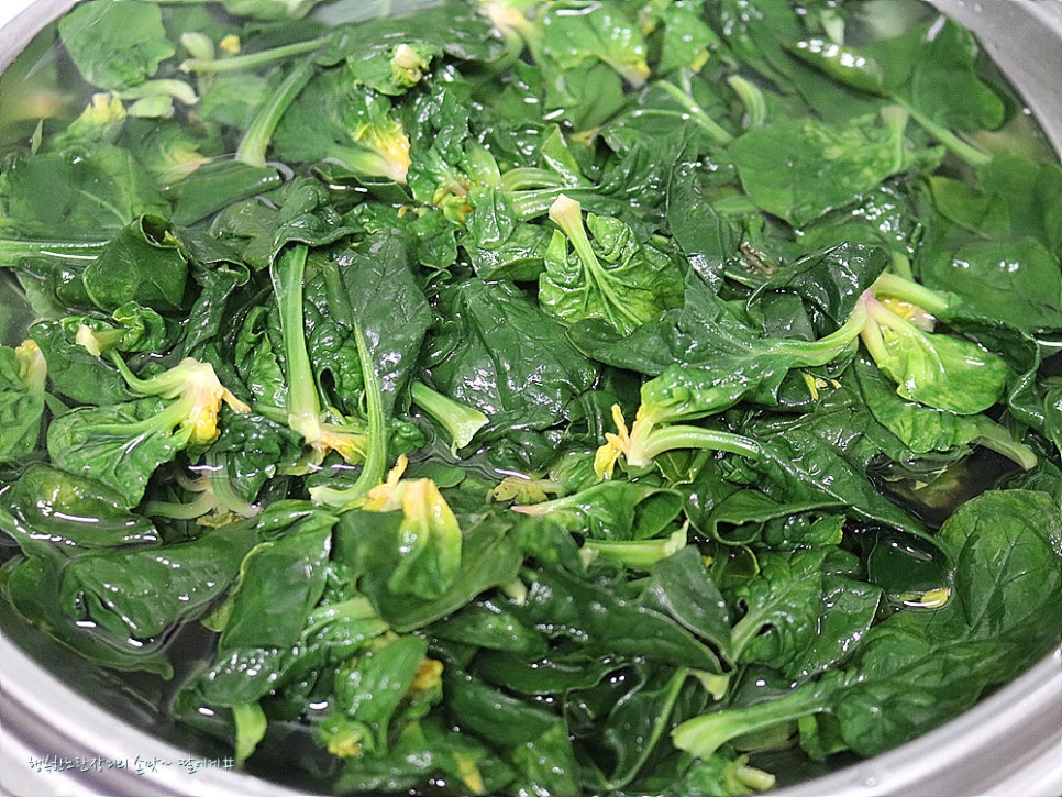 일반 시금치 처럼 넣다가 빼는 정도로 데치지않고