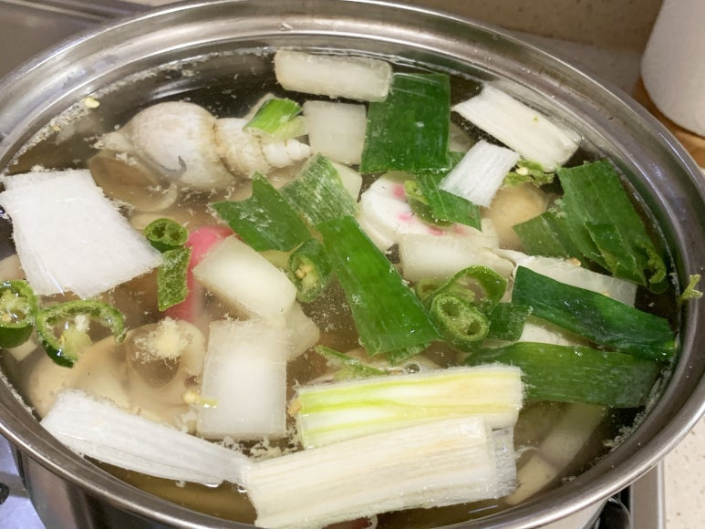 그리고 육수재료로 멸치다시마육수와 해물육수를 넣어 줍니다.