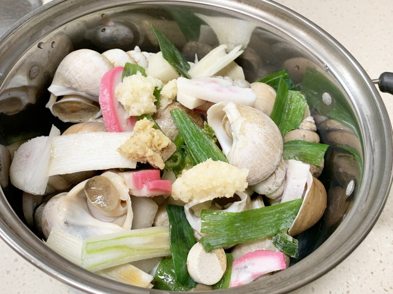 해감을 시켜 준 후 깨끗하게 씻어서 냄비에 넣어 줍니다.