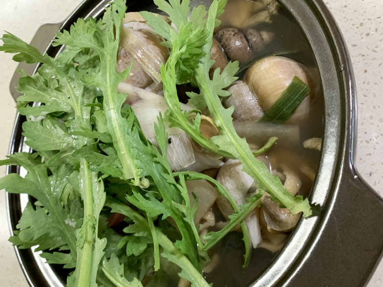 마지막으로 쑥갓을 넣어서 마무리합니다.