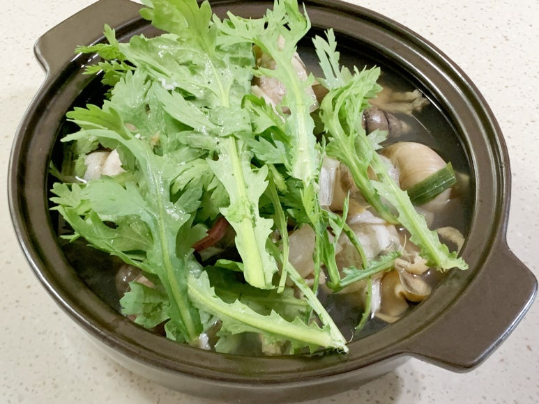 쑥갓을 넣고는 끓이지 않으셔도 됩니다.