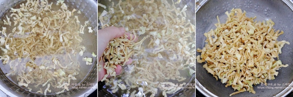 무말랭이를 물에 오래 담가 놓게 되면 무말랭이의 좋은 성분이 다 빠져나갈 것 같아서