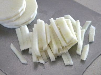 잘 절여진 무는 가볍게 물기를 짜서 넓은 볼에 담아주세요.