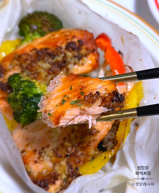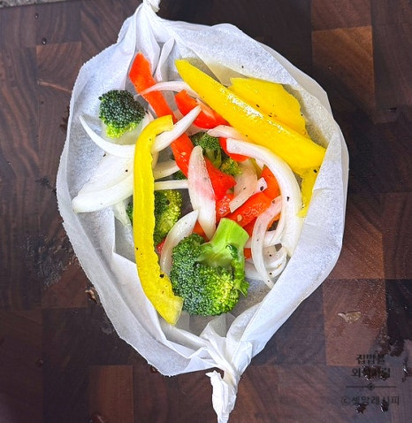 야채에 기본 간을 해두면 연어랑 같이 구워도