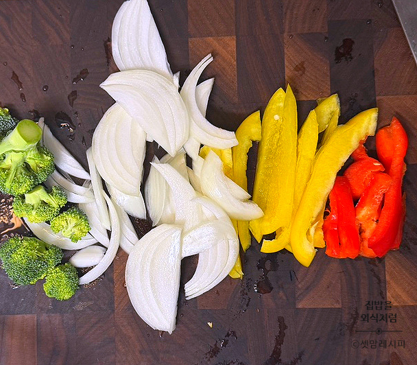 저는 양파, 파프리카, 브로콜리 준비했어요.