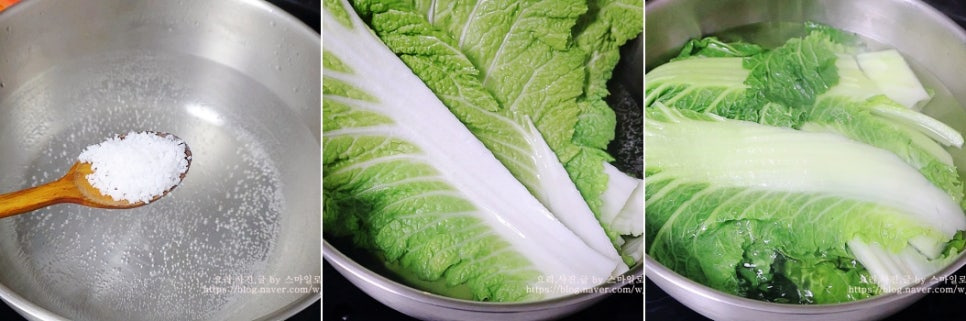 배추를 줄기부터 넣은 후 30초 정도 지난 후