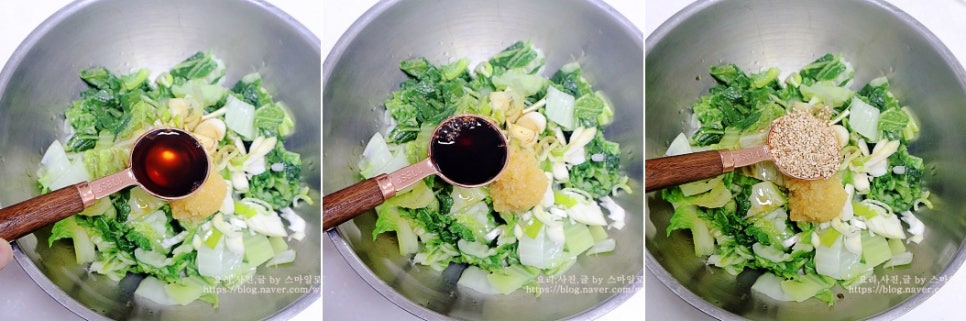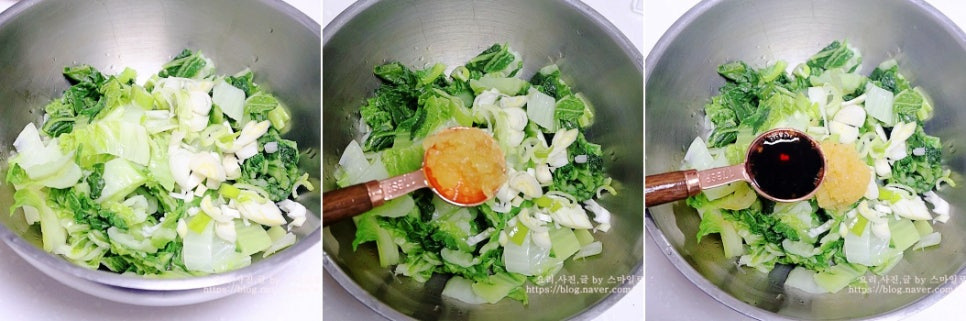 배추 나물은 물기를 꼭 짜도 간을 해놓으면 물이 생겨서
