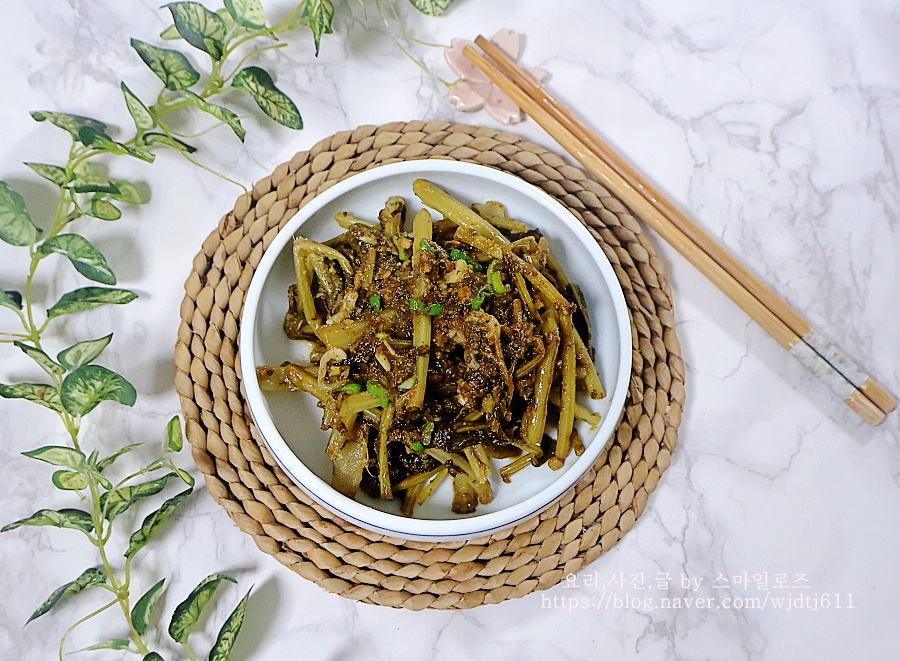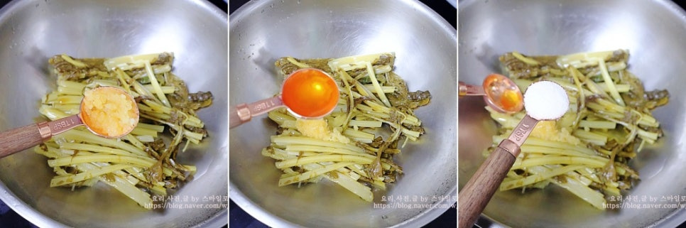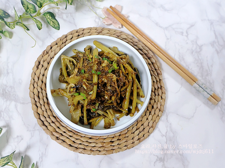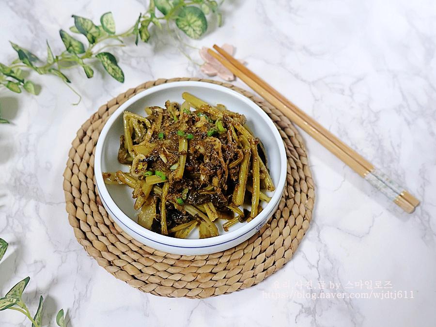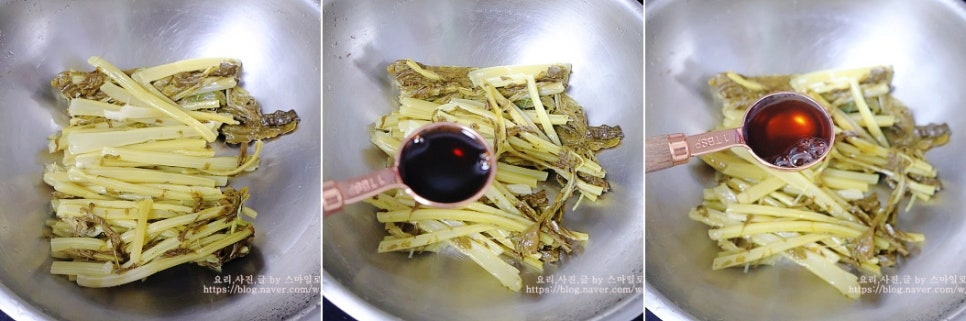 설탕을 조금 넣으면 시래기의 묵은 내를 잡아주고 부드럽게 해주는 역할을 합니다