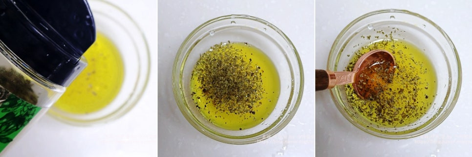 작은 볼에 레몬즙 2큰술, 엑스트라 버진 올리브유 3큰술을 넣고