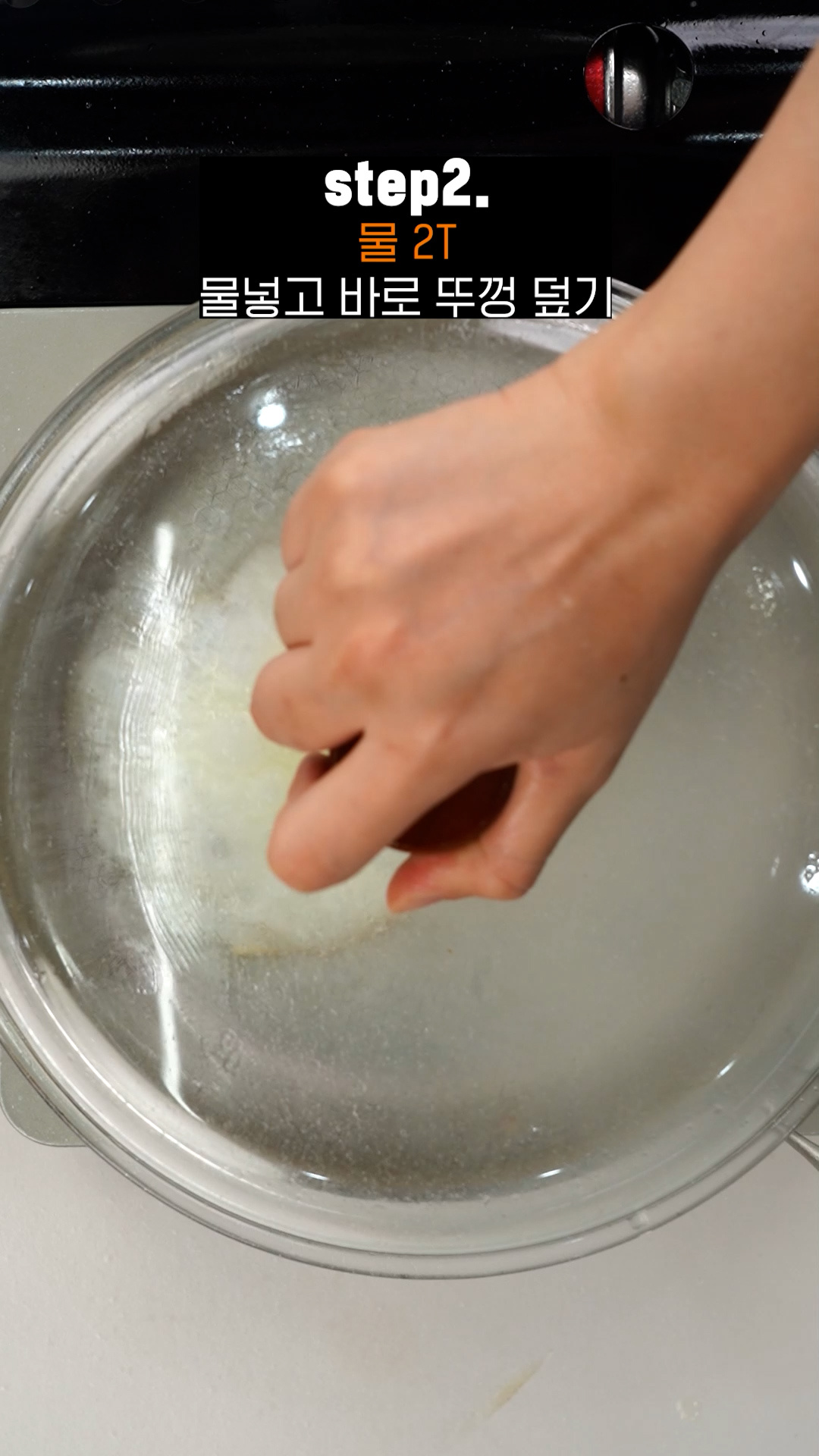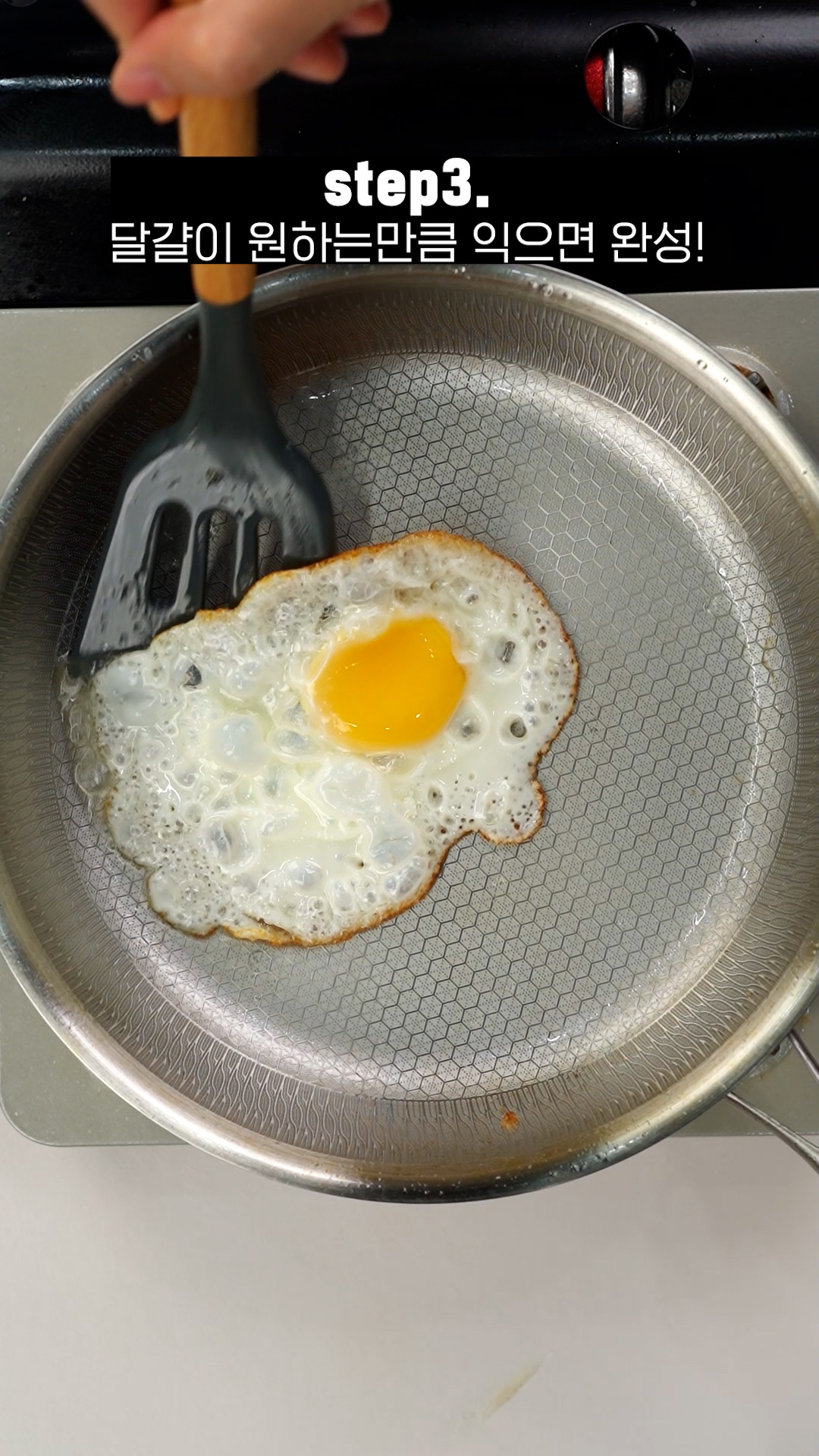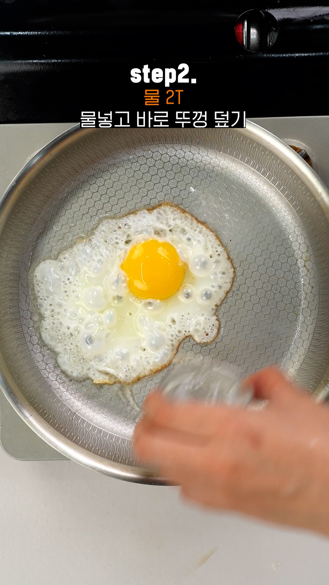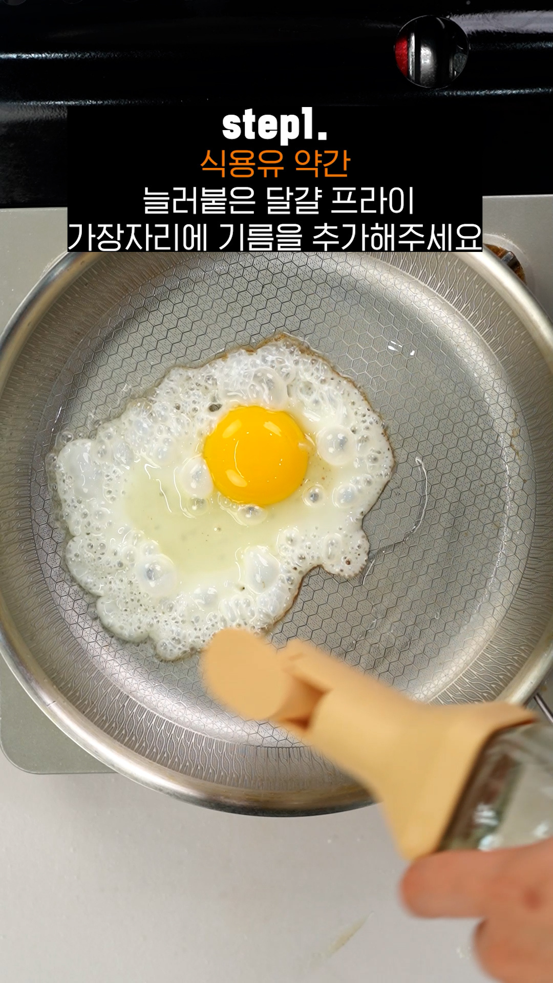 Tip.수증기가 나오면서 눌러붙은 프라이가 잘 떨어져요.