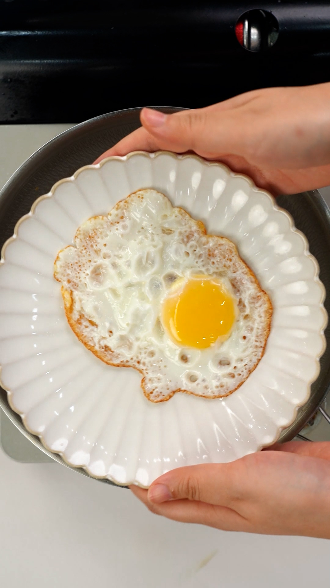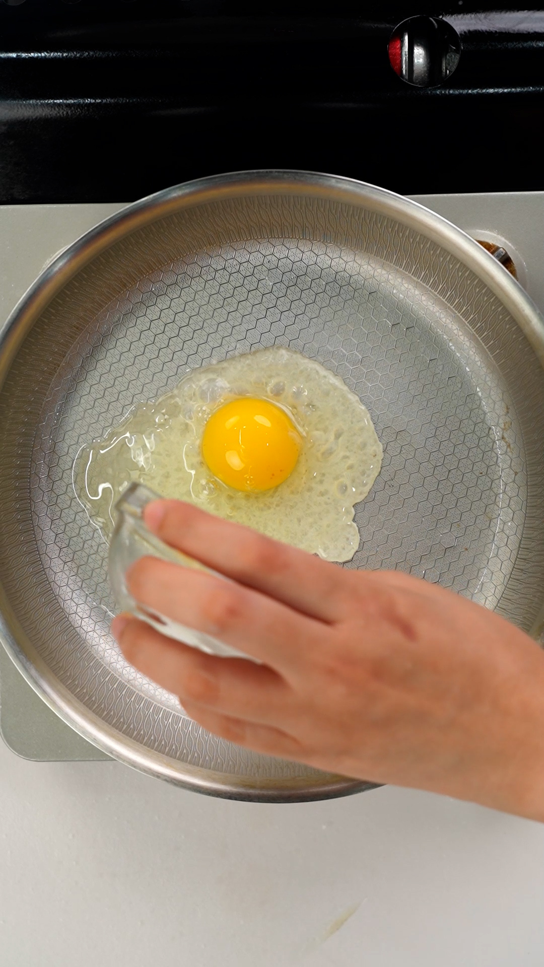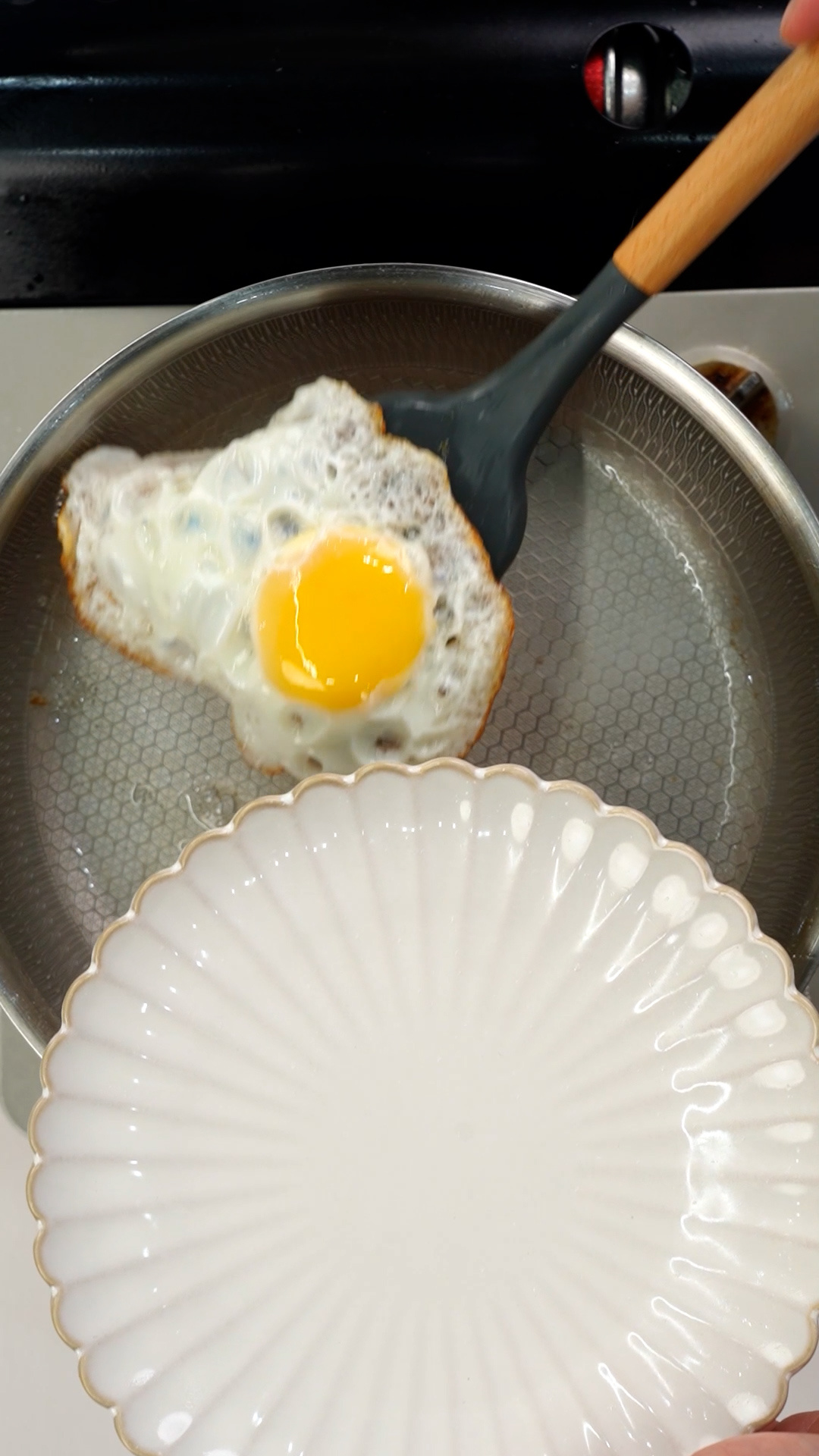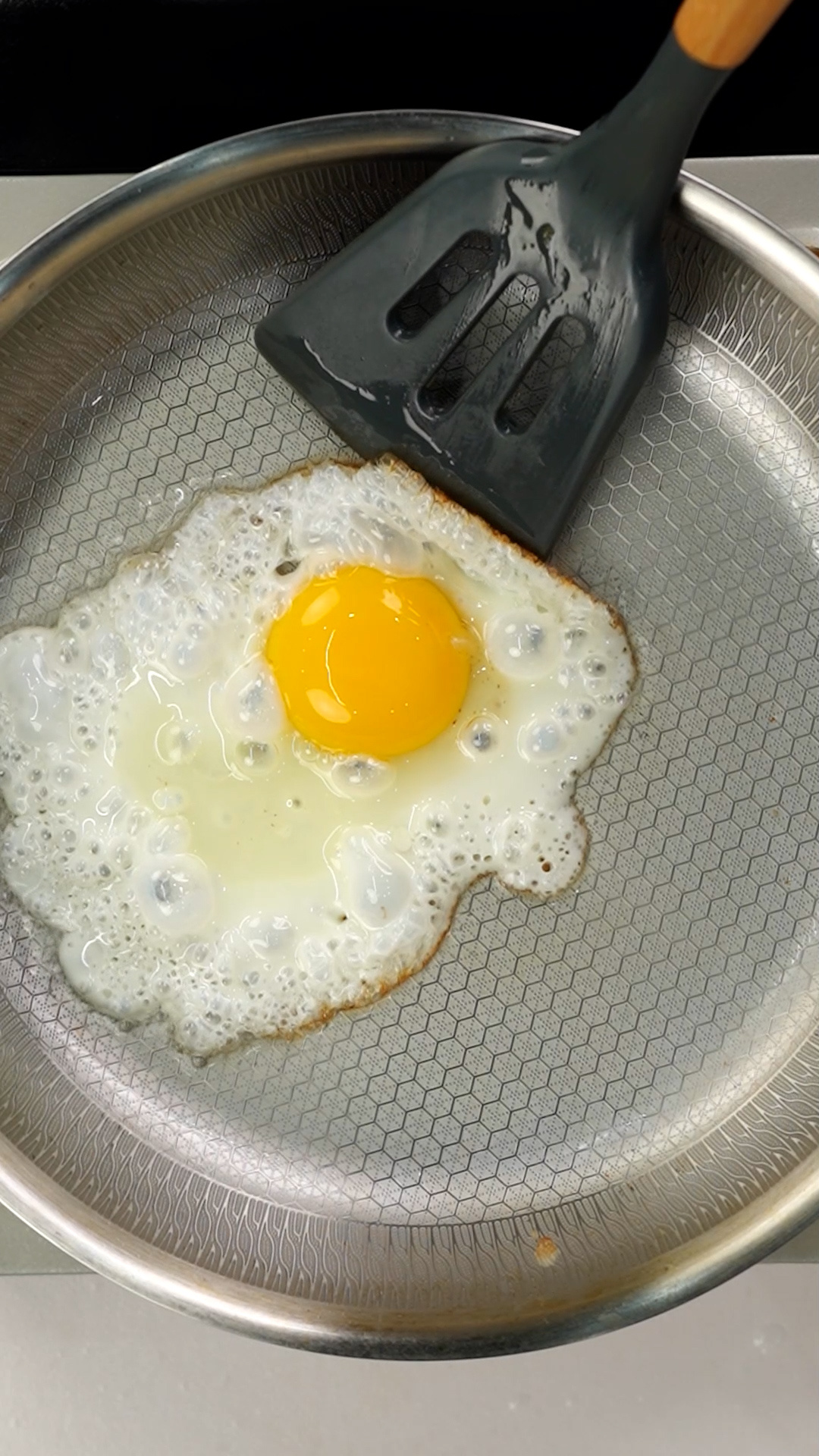 Tip.수증기가 나오면서 눌러붙은 프라이가 잘 떨어져요.