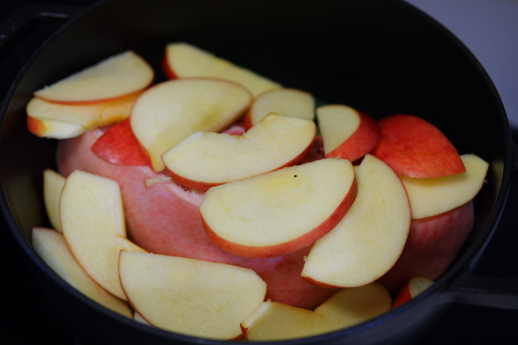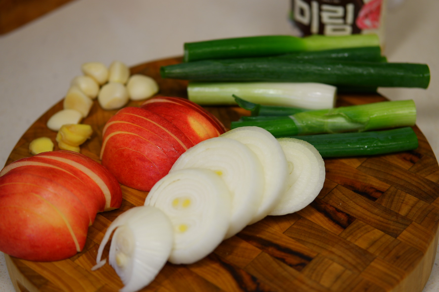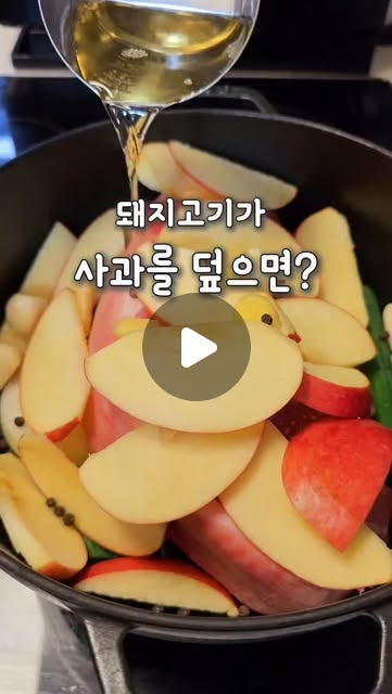 사과로 덮어 야들야들 잡내없이 부드럽고, 양파와 사과의 자연스러운 단맛으로 고기 잡내를 잡고 물 없이도 촉촉하게 맛있게 만들수 있거든요.