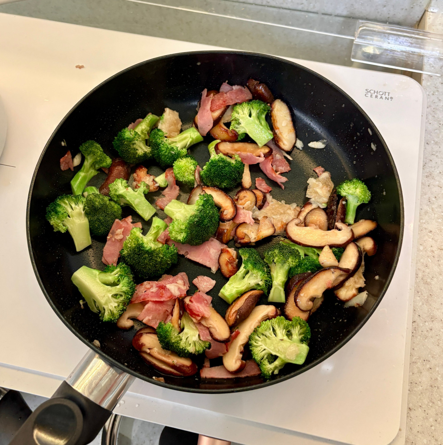 다진 마늘, 베이컨, 브로콜리 볶기