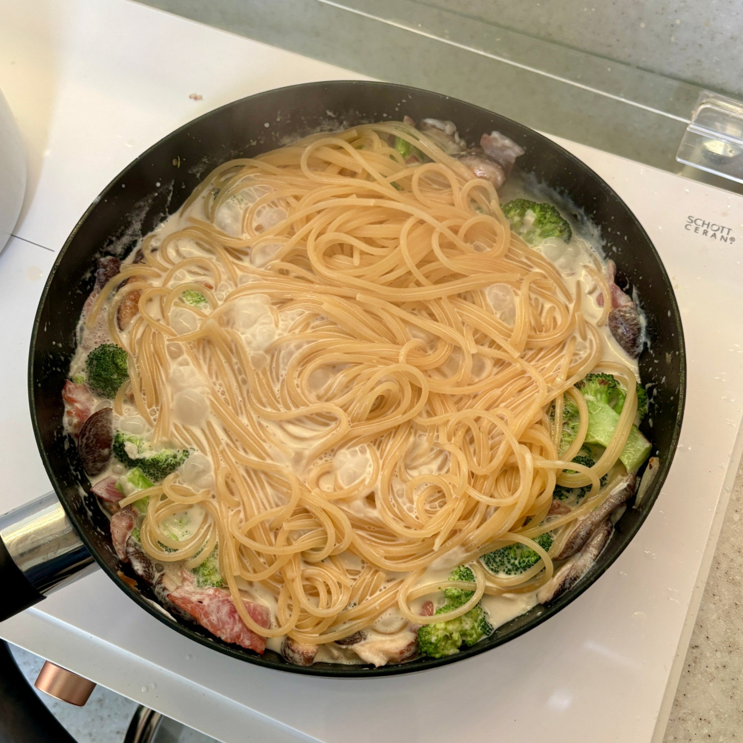 3. 소스의 농도가 너무 꾸덕꾸덕하다면 면수를 추가하며 맞춰주세요.