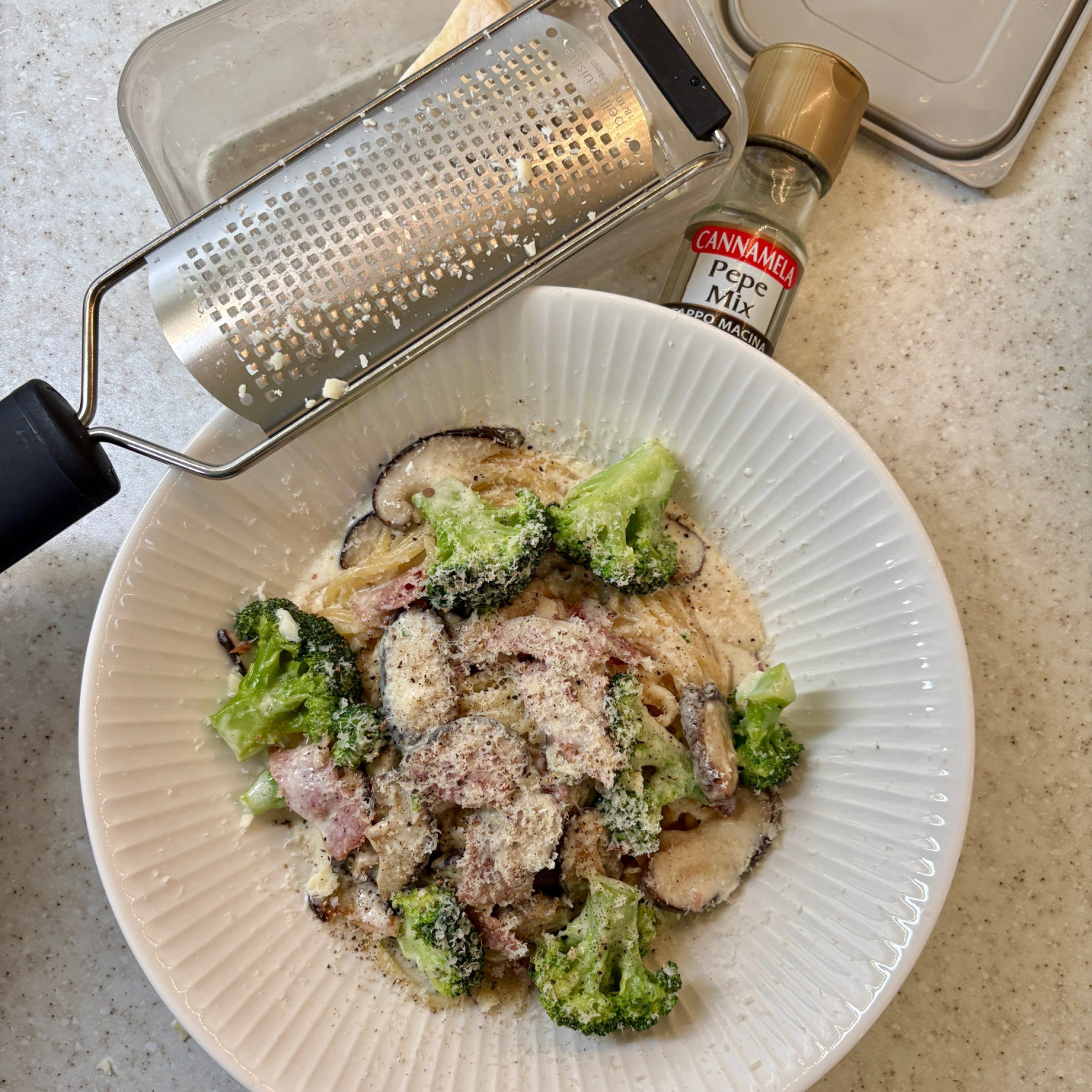 1️⃣ 우유나 면수를 추가해도 좋고 2️⃣ 깊은 풍미를 위해 파마산 치즈 가루를 넣어도 좋아요.