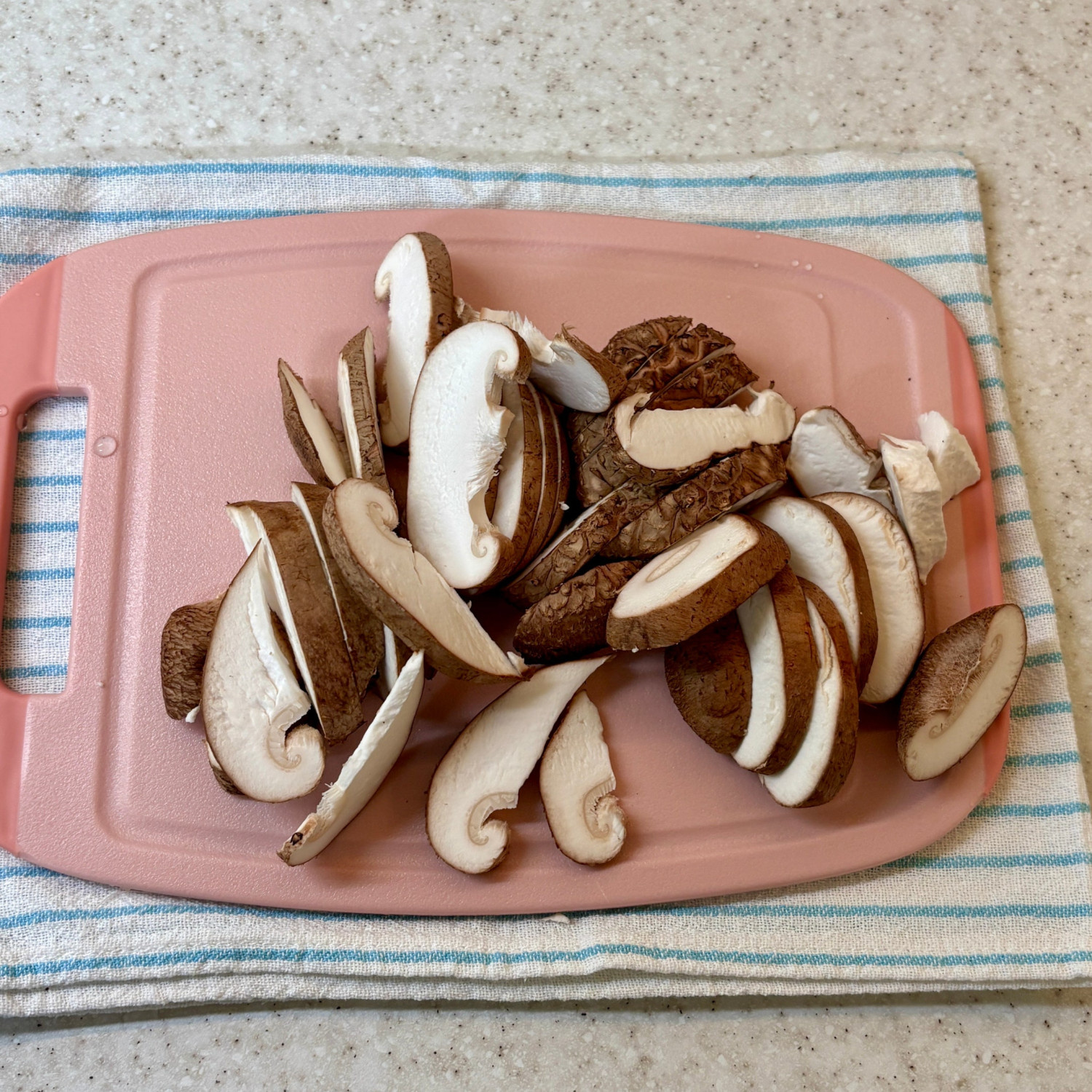 표고버섯 밑동을 제거하고 슬라이스 썰기