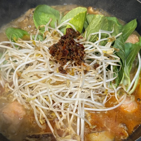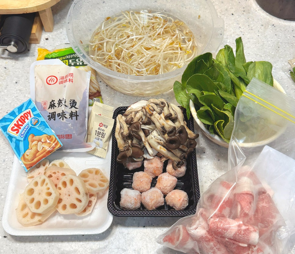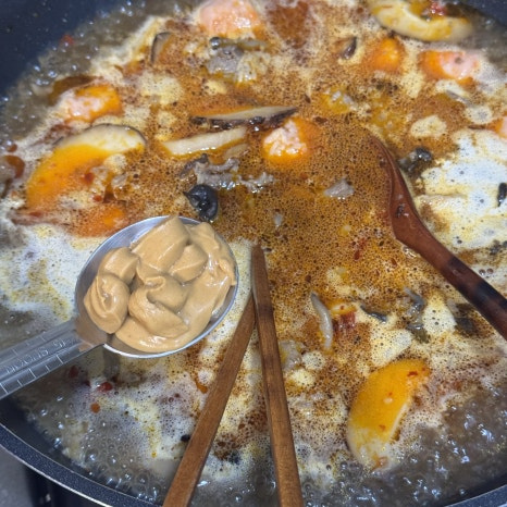 물 1L, 사골맛 코인육수 2개, 땅콩버터 1큰술