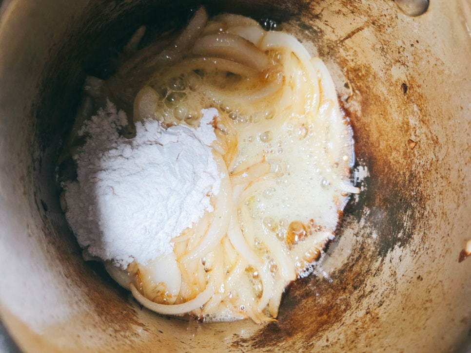 양파가 투명해졌을때 밀가루 넣고 볶아주세요