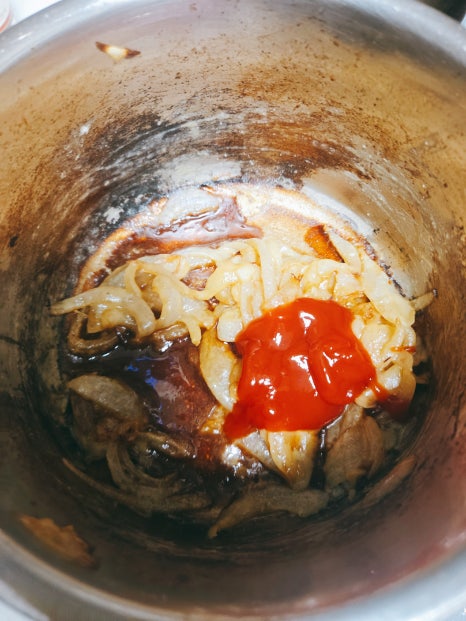 케챂, 우스터소스, 알룰로스, 사과잼, 간장넣고 볶아주세요