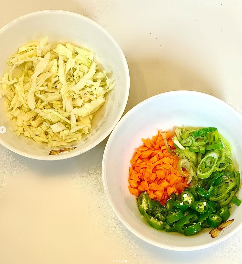 1️⃣ 양배추·당근은 채 썰고, 청양고추는 잘게 다져 준비해요.
