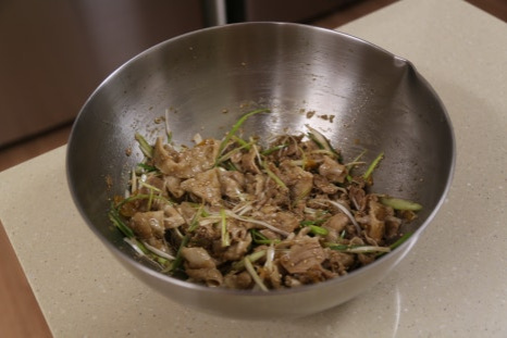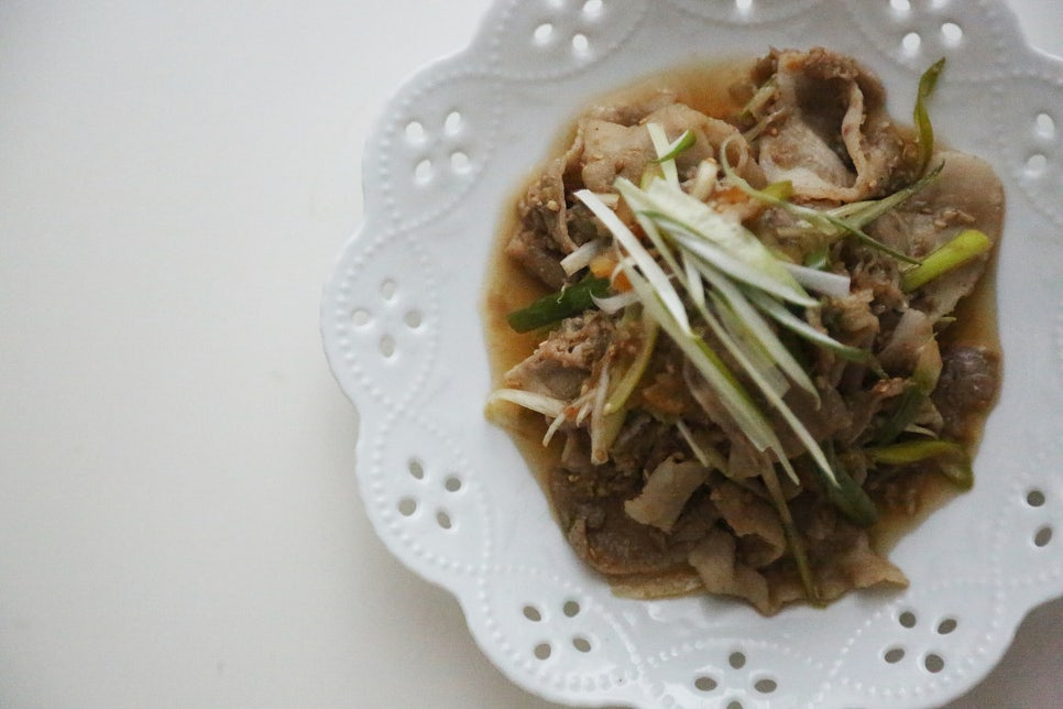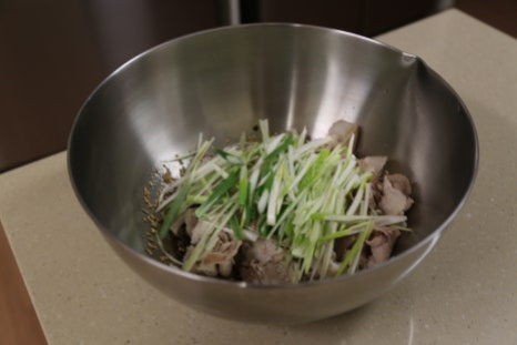 유자청드레싱, 데친 대패삼겹살 450g, 채썬 대파 1.5대
