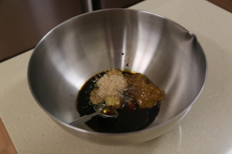 유자청 2T, 양조간장 2T, 레몬즙 1T, 다진 마늘 1T, 매실청 1T, 들기름 1T, 와사비 0.5T, 통깨 1T, 후춧가루 톡톡톡
