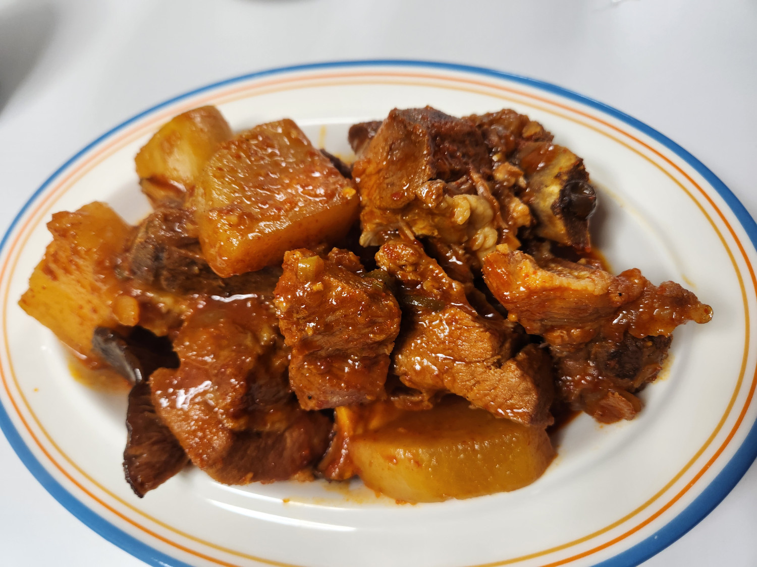 1. 고기를 먼저 냄비에 넣고 물을 고기가 살짝 보이게 부어주세요