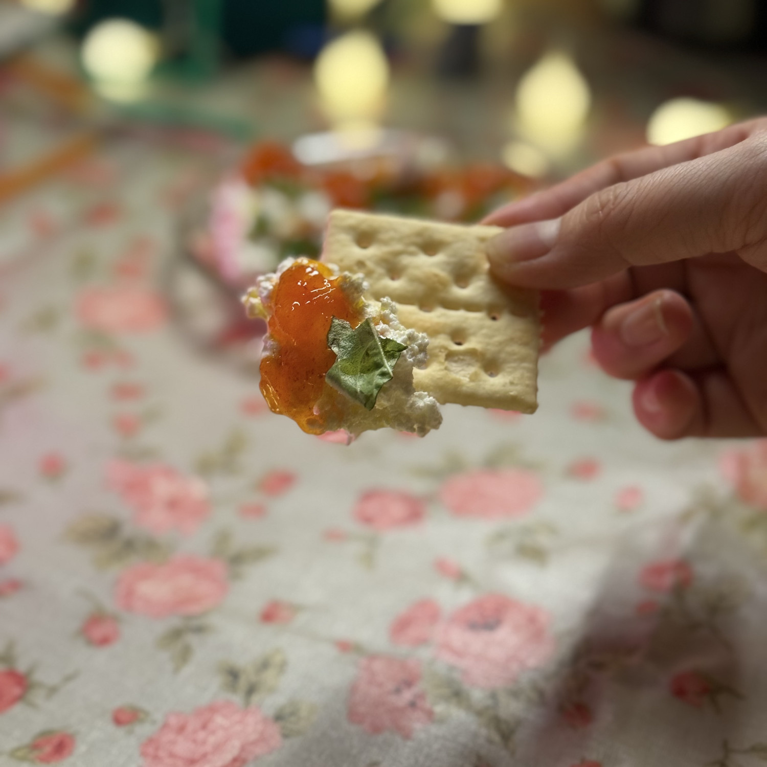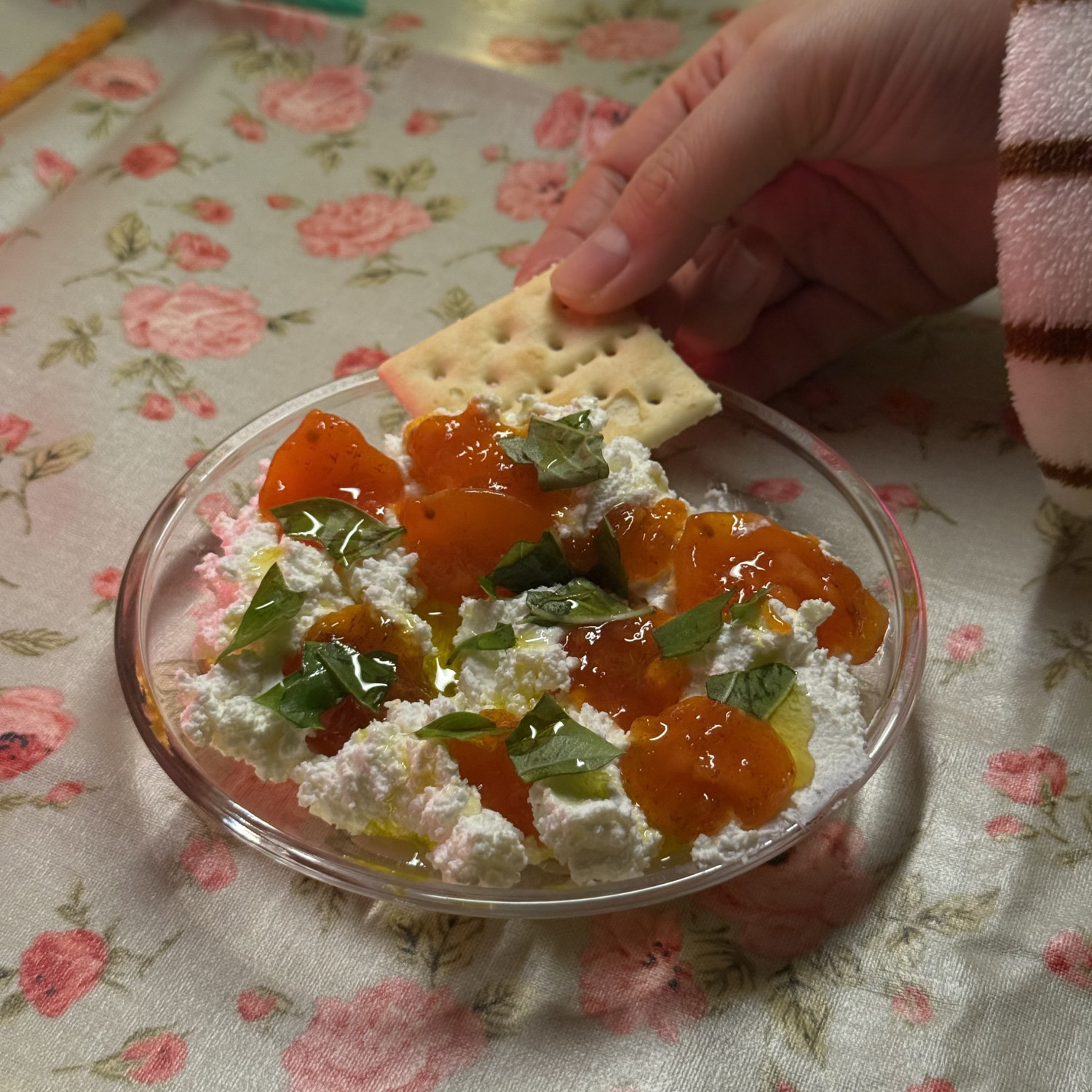 비스킷에 연시와 그릭요거트를 함께 올려 먹어보세요