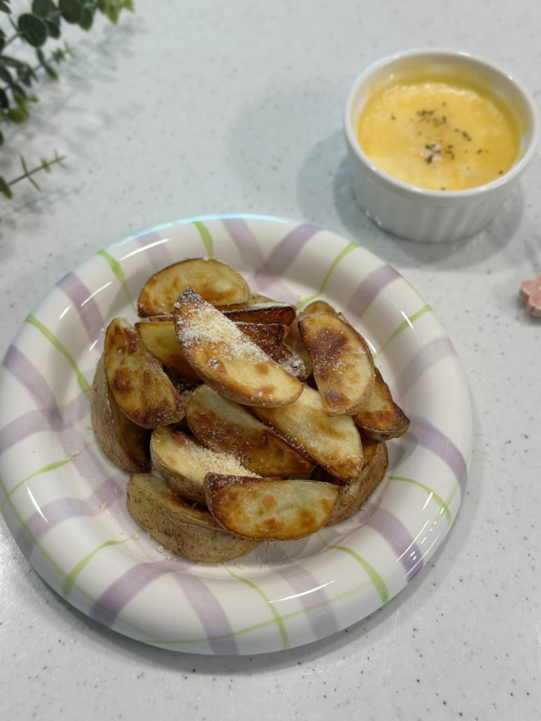 아이들 하교 간식으로 웨지감자를 만들었어요. 포슬포슬한 감자를 껍질째 노릇하게 에어프라이어 구워주니 담백하고 고소한 맛으로 먹기 좋은 간식! 감자를 쐐기 모양 또는 웨지 모양으로 썰어서 굽거나 튀긴 요리를 웨지감자라고 하는데 껍질째 썰어서 겉은 바삭하고 속은 촉촉한 식감이라 맛있답니다. 그냥 먹어도 고소한 웨지감자와 잘 어울리는 체다치즈 소스까지 맛있게 만드는 법을 남겨 볼게요 :)