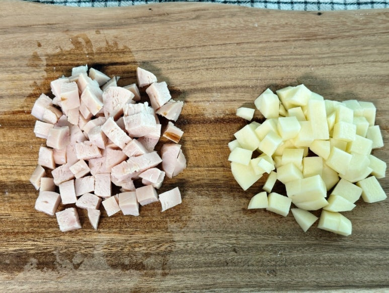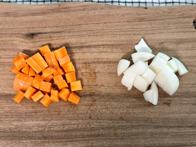 당근과 양파도 작게 깍둑 썰어줍니다.