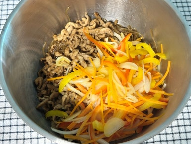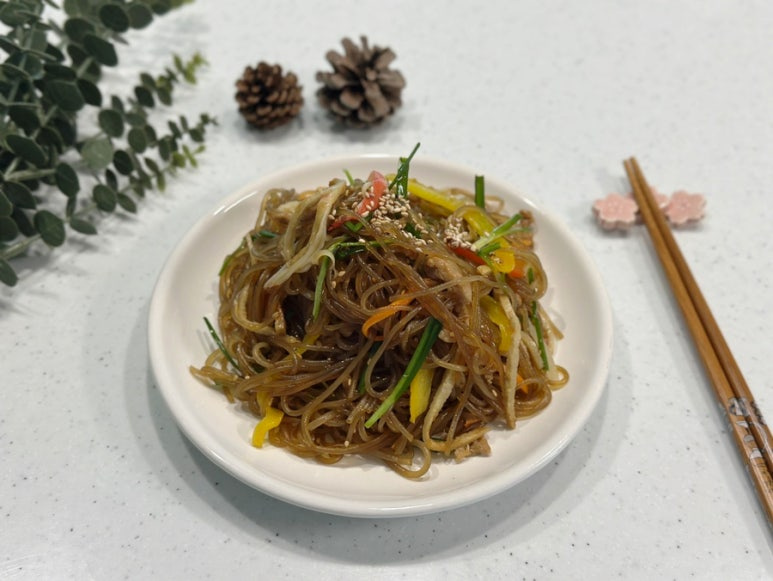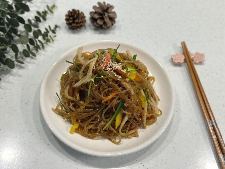 잡채는 당면과 여러 가지 재료들을 볶아서 간장 양념에 잘 어우러지게 버무린 푸짐한 일품요리 메뉴인데요. 생일날이나 잔칫상에 꼭 올라가는 음식이기도 하고 명절 음식에도 어울리는 한식이랍니다. 당면을 삶지 않고 팬에 볶아서 돼지고기와 야채들과 함께 버무리면 쫄깃하면서 불지 않는 잡채가 되는데요. 어렵지 않고 맛있게 잡채를 만드는 법을 남겨 보도록 할게요 :)