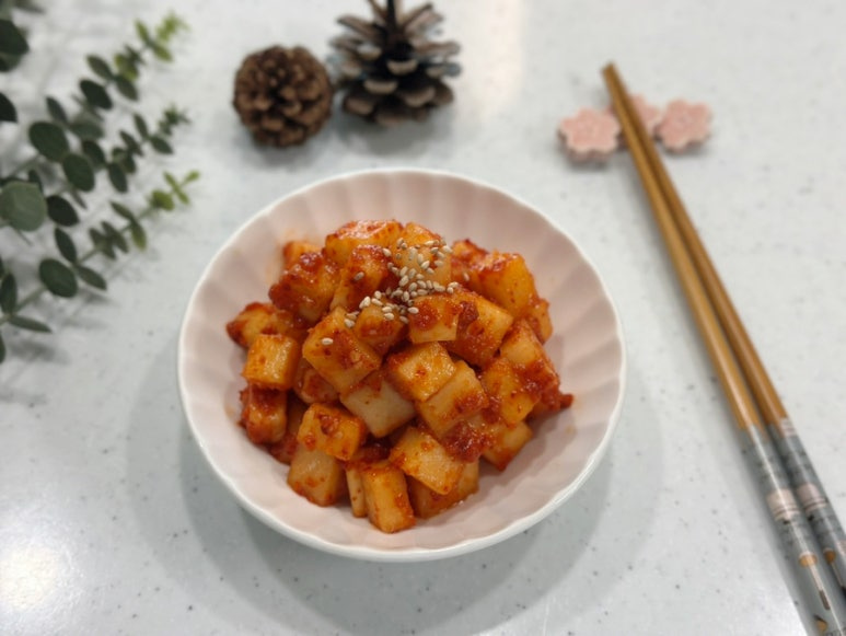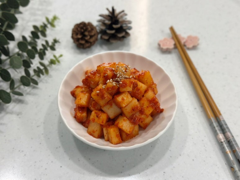 한국인의 밥상에서 빠질 수 없는 반찬이 바로 김치인데요. 아삭하고 입맛 돋우는 반찬! 입맛을 깔끔하게 만들어주는 깍두기를 밀가루 풀 없이 간단하게 담글 수 있답니다. 특히 저희 집 딸아이가 좋아하는 김치라서 아이들 한 입 크기로 깍둑 썬 깍두기! 사과와 양파를 갈아서 양념장을 만들어주니 무의 매운맛이 줄어들어서 금방 담가서 먹어도 맵지 않고 실온에 숙성시켰다가 냉장고에 넣으면 맛있게 익어서 더 맛있는 무김치인 간단 깍두기 담그는 법을 남겨 보도록 할게요 :)
