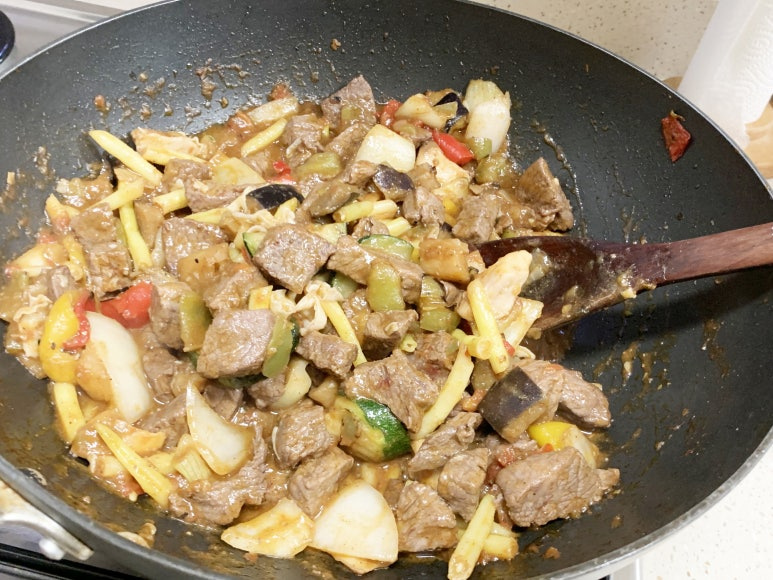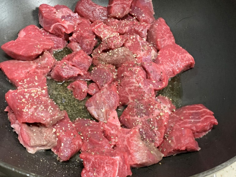 소고기 찹스테이크용을 넣어서 구워 줍니다.