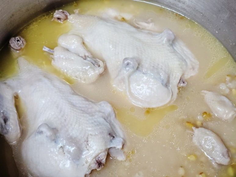 닭이 자작하게 잠길 정도로 물을 부어 줍니다.