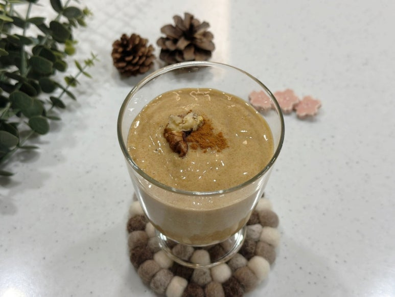 냉동곶감 2개 , 우유 500ml , 꿀 1t , 시나몬가루 0.5t , 견과류 (약간)