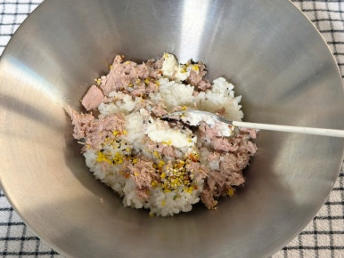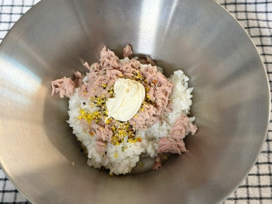 롤유부초밥 키트 1개 , 밥 2공기 , 참치캔 1개 , 마요네즈 1T , 참기름 2t , 통깨 3T