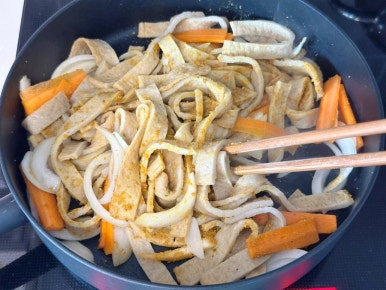 밑반찬으로 만들어두면 맛있는 별미 반찬! 납작 어묵으로 볶음 반찬을 만들었어요. 반찬가게에도 단골 반찬으로 나오는 쫄깃하고 맛있는 어묵볶음을 카레 가루를 넣어서 더욱 풍미 있게 만들어 보았답니다. 납작 어묵을 끓는 물에 살짝 데쳐낸 다음 카레 가루를 넣고 볶아주면 간도 딱 맞고 카레향이 은은하게 어우러져서 밥반찬으로 먹기 딱 좋은 어묵볶음! 어묵 카레 볶음을 만들어 볼게요 :)